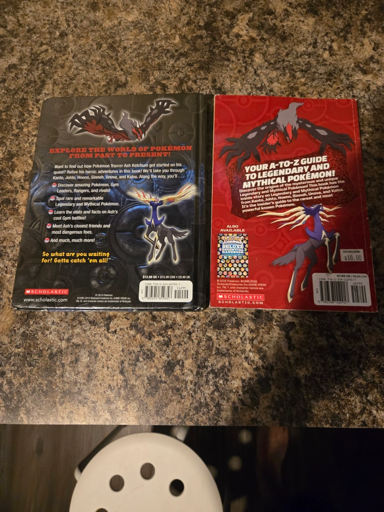 Selling two Pokémon official guide books! One is "The Official Adventure Guide" and the other is "Official Guide to Legendary and Mythical Pokémon". Both are in good condition and would be great for any Pokémon fan