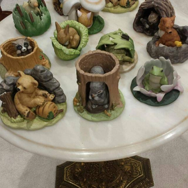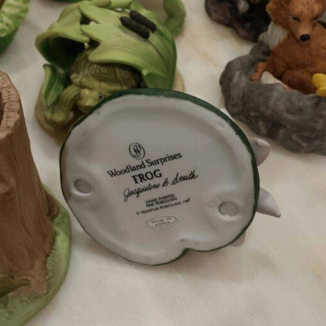 Franklin Mint Woodland Surprises set (12 painted porcelain figurines) by Jacqueline B. Smith. Includes Frog, Fox, Turtle, Squirrel, Raccoon, Rabbit, Duck, Beaver, Mouse, Bluebird, Bear, and Baby Bear. Great condition, perfect for collectors! Collectible Highlights: - Vintage 1984 Franklin Mint collectible - Ideal for display, curio cabinets, or as a nostalgic gift for animal and porcelain collectors Franklin Mint Woodland Surprises set Jacqueline B Smith porcelain figurines 1984 Woodland Surprises collection Fine porcelain animals collection Franklin Mint collector figurine set Vintage woodland animal figurines Painted porcelain Franklin Mint