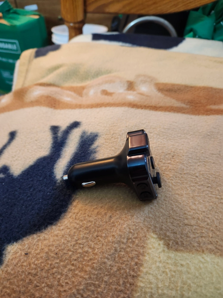 This is a car charger with QC3.0 and PD 20W capabilities. It features USB and USB-C ports for charging your devices while on the go. It's in great condition and ready to use in your vehicle with Bluetooth