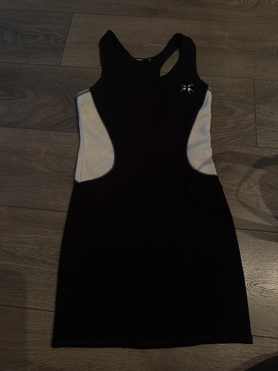 Aeryne black dress in size small. It has a racerback style and white side panels. Perfect for a night out or a casual day!