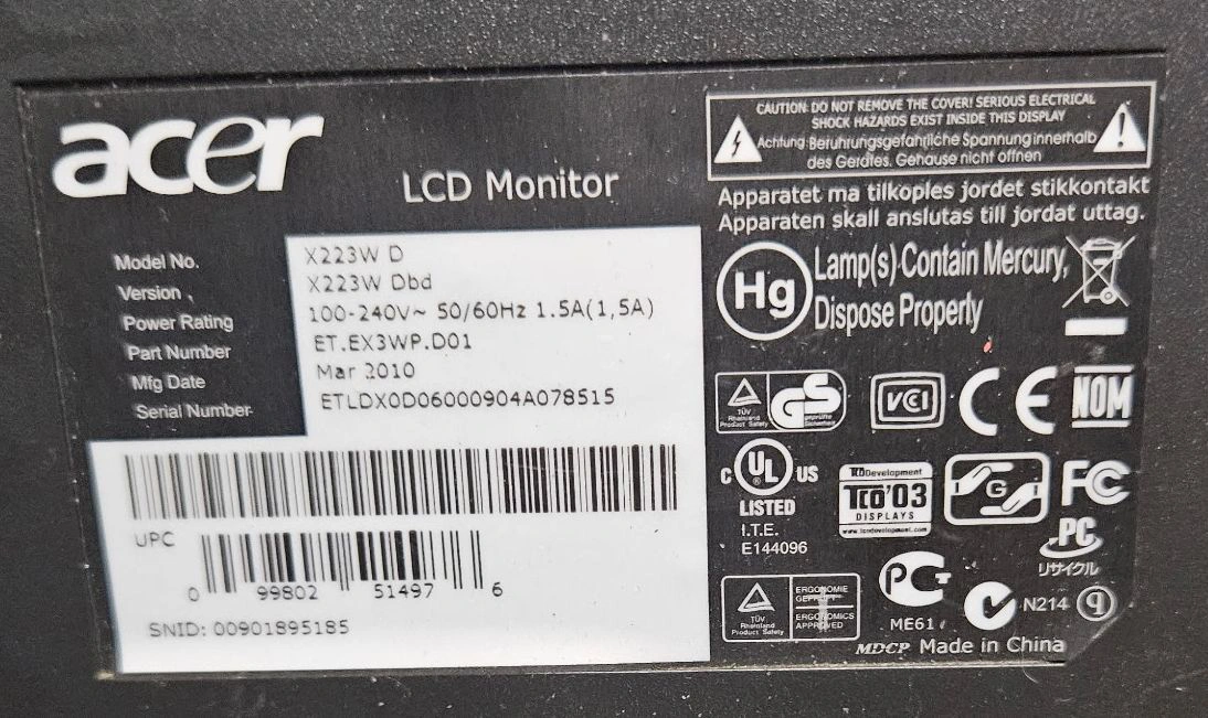 25Selling an Acer LCD Monitor, model X223W D. It's in good working condition and ready for a new home (kitten not included)