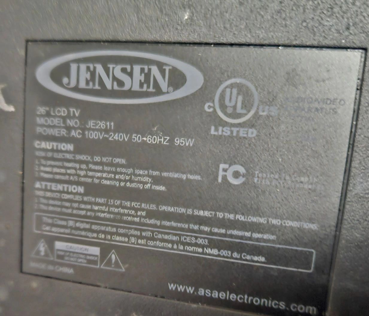 25Selling a Jensen 26" LCD TV, model JE2611. It's in good working condition and ready for a new home!