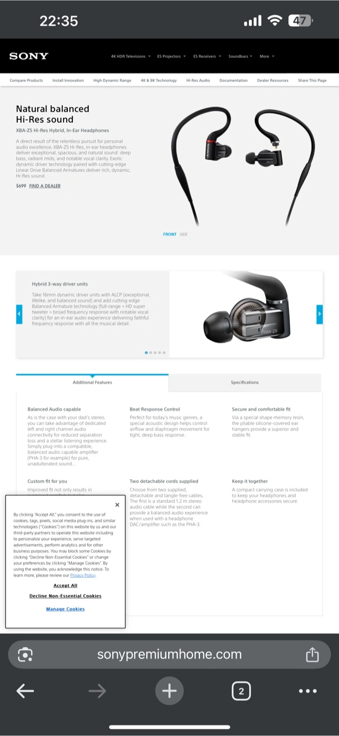 Selling a pair of Sony XBA-Z5 Hi-Res in-ear headphones. These headphones offer natural balanced Hi-Res sound. They feature hybrid 3-way driver units for exceptional audio clarity and deep bass. Comes with the official upgrade cables.