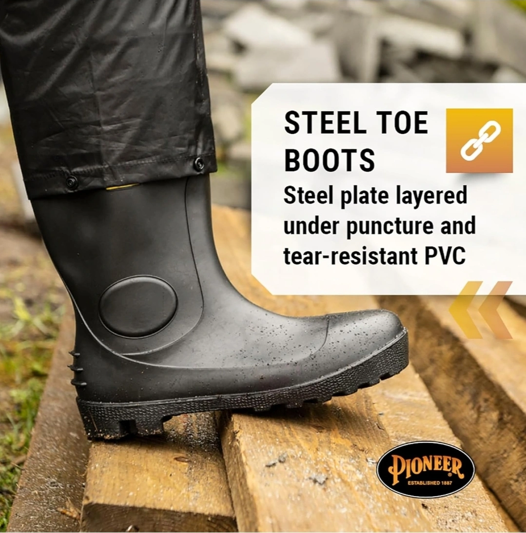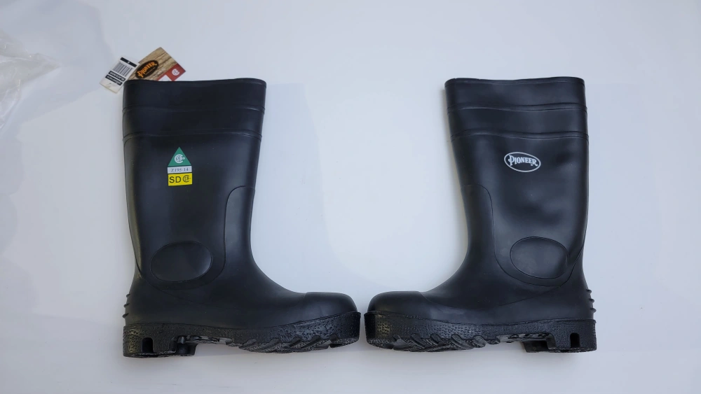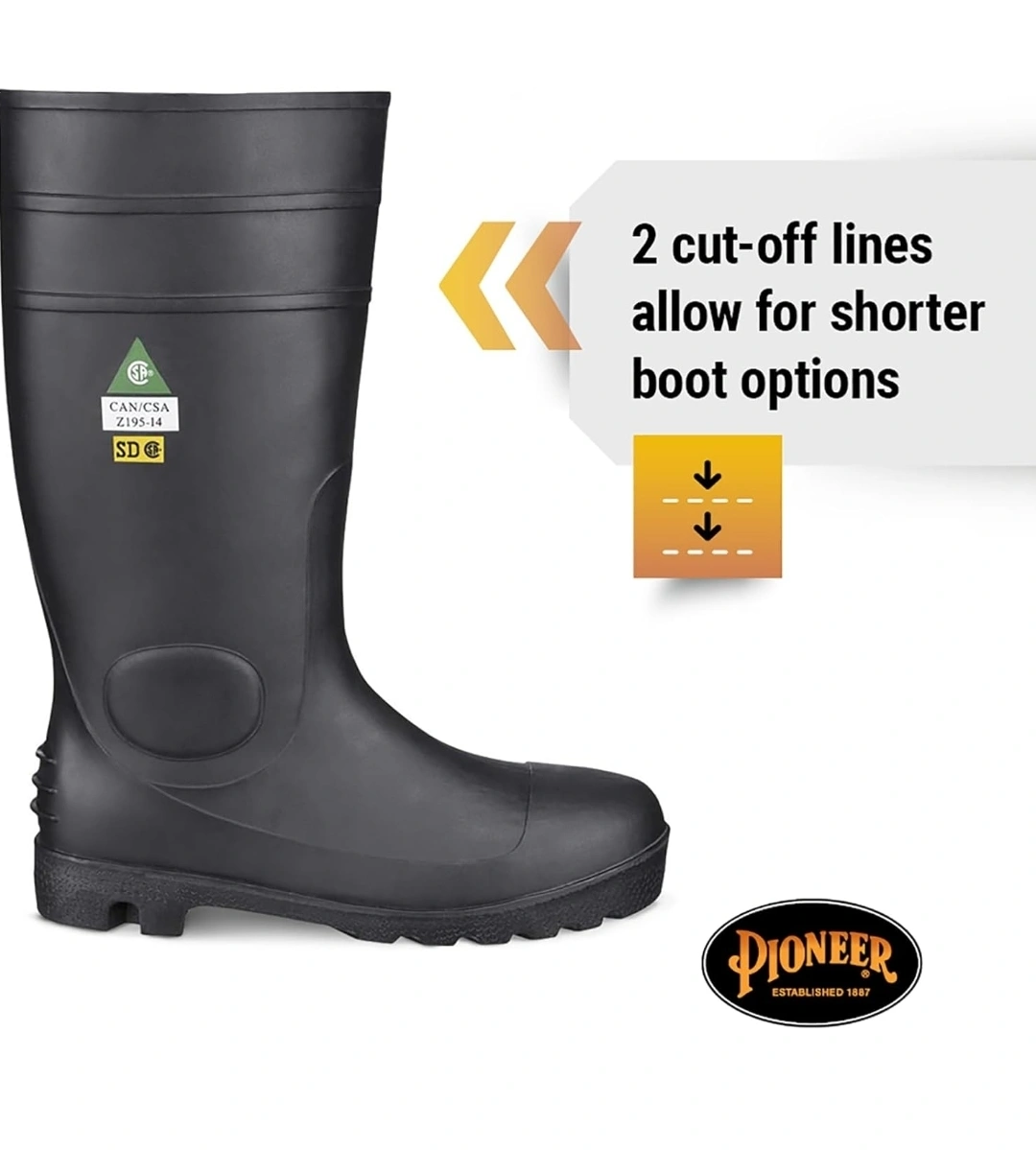 Stay safe, dry, and comfortable on the job with these Pioneer Heavy-Duty Steel Toe PVC Work Boots. °•○•°•○•°•○•°•○•°•○•°•○•°•○•°○•°•○°•○°•○ 🌟 Price: $60 📦 Condition: New with tag 📍 Pick-Up: Scarborough Golf Club Rd & Lawrence Ave E 🚀 Fast Delivery: local within reasonable range or budget-friendly shipping via Canada Post/UPS. 🔎 Don't Miss Out! Explore my other listings for more amazing deals. Thanks for stopping by! °•○•°•○•°•○•°•○•°•○•°•○•°•○•°○•°•○°•○°•○ Built to withstand tough conditions, these boots meet CSA Class 1 standards and are perfect for construction, manufacturing, farming, and industrial work. Key Features ✅ Steel Toe & Steel Plate Protection – Guards against heavy impacts and punctures. Heavy-Duty PVC Construction – Tear- and puncture-resistant for long-lasting durability. Slip Resistant – Passed EN ISO 20344:2011 & ISO 13287:2019 slip resistance tests. Static Dissipative – Minimizes static electricity build-up to reduce the risk of shock. Customizable Height – Cut-off lines allow you to shorten the boot for comfort. CSA Class 1 Certified – Meets Canadian safety standards for maximum workplace protection. --- Specifications 📏 Brand: Pioneer Model: V4710270 Color: Black / Noir Size: 6 (Men) / 8 (Women) UPC: 626053524920 Material: PVC with steel toe & steel plate Height: 15" (adjustable via cut-off lines) --- Why Choose Pioneer Boots? 🛡️ Unlike cheaper options, these boots are built for extreme work environments. They resist water, chemicals, oil, and debris while keeping your feet comfortable and protected all day. 🚀 Perfect for: Construction crews, warehouse workers, outdoor laborers, farming, or any safety-required job site.