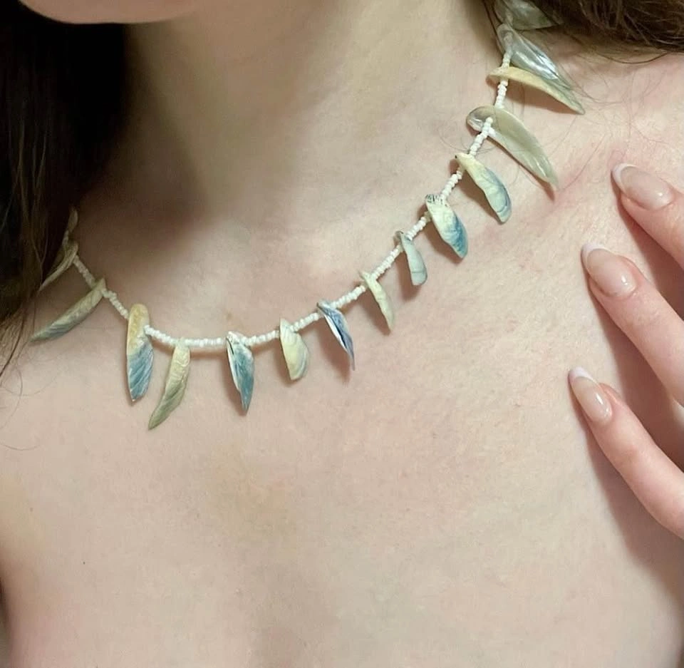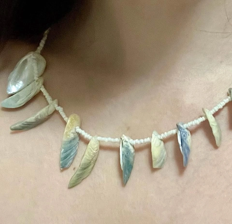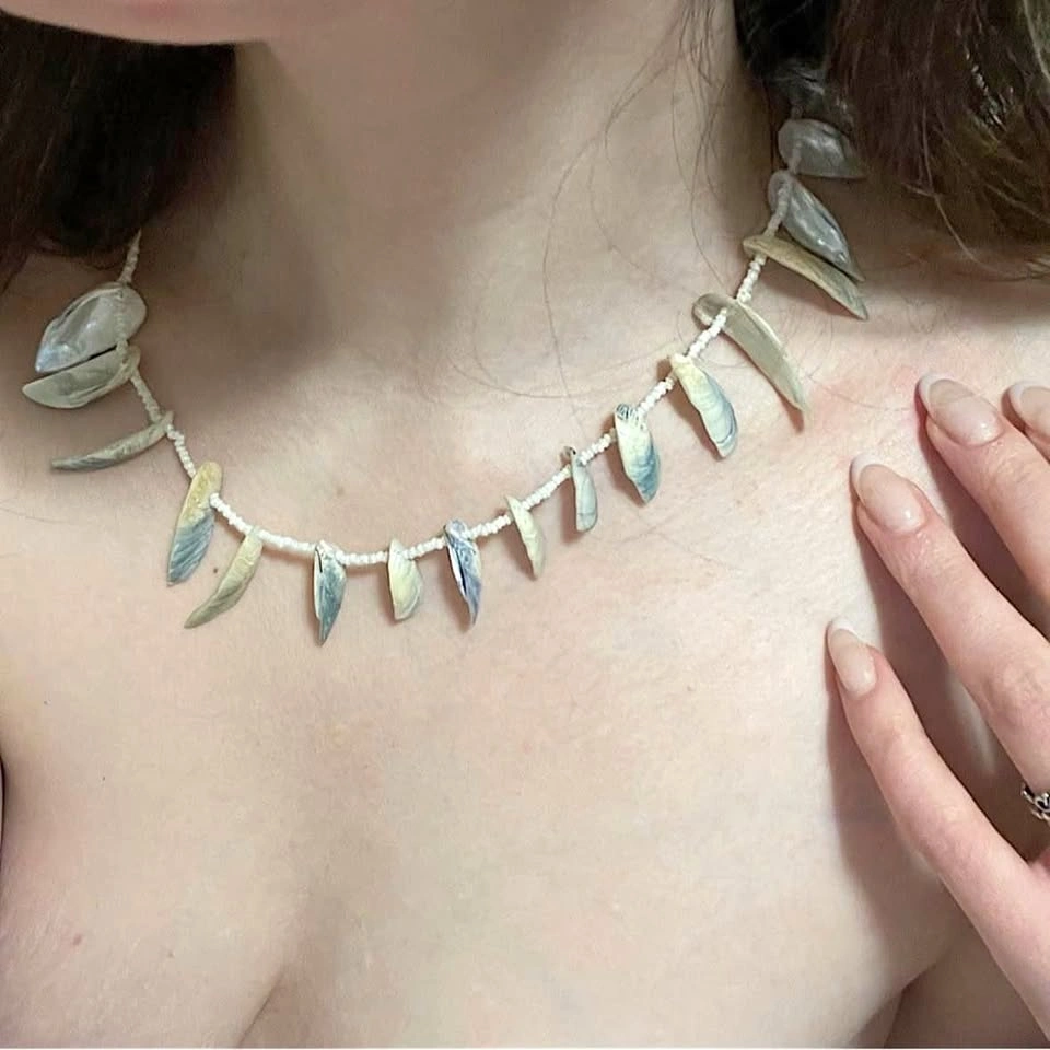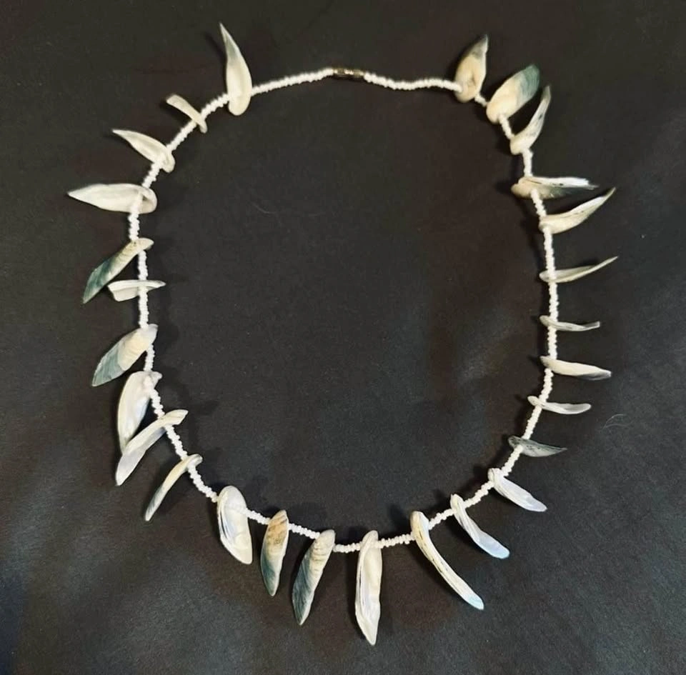 Pick up in Niagara Falls Ontario. Gorgeous! Has a silver metal closure, in great condition. Many of the shells have an iridescent shine on parts of them. One of a kind! Adorable for the summer time, or beach days and nights.