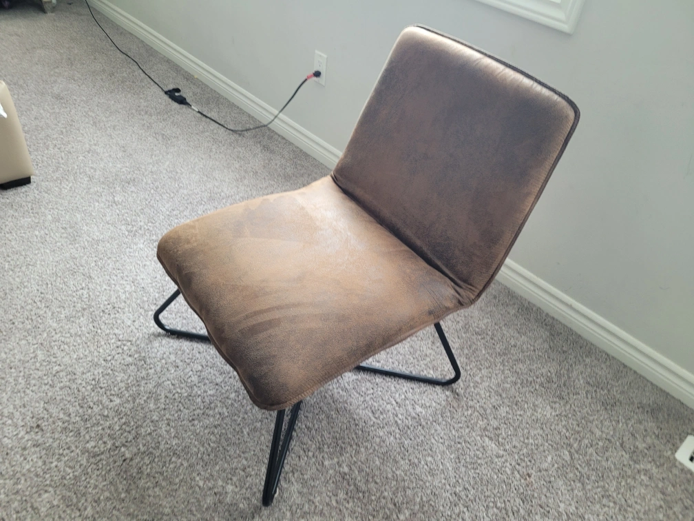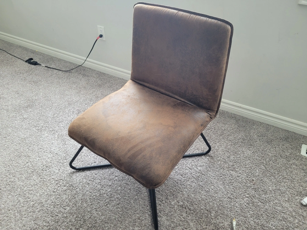 Selling a brown accent chair. It's a stylish addition to any room! The chair has a unique design with a comfortable seat and backrest. It's perfect for relaxing or adding a touch of elegance to your living space