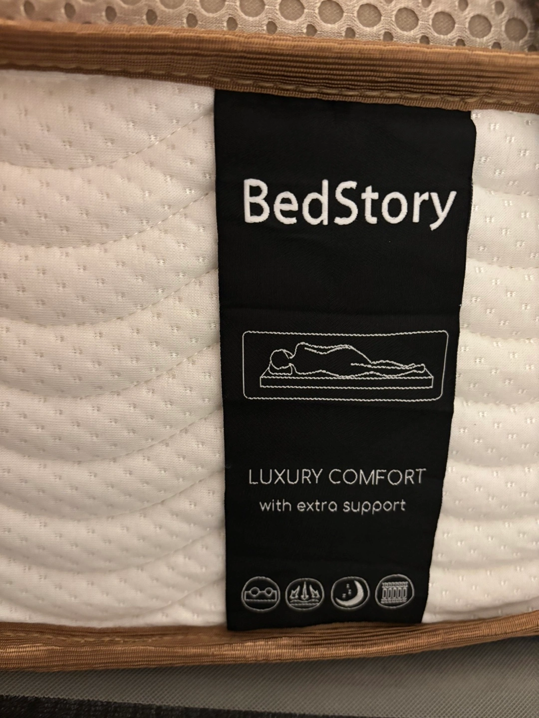 Twin size mattress. Medium Firm Bedtime story/Hybrid Mattresses. Double Gel Memory Foam & Pocket Spring. 97L x 188W x 30Th cm Cover material Polyester This is a guest bed. 80% new and great condition! Bought a year ago from Amazon. Pick up at Yonge and Highway 7