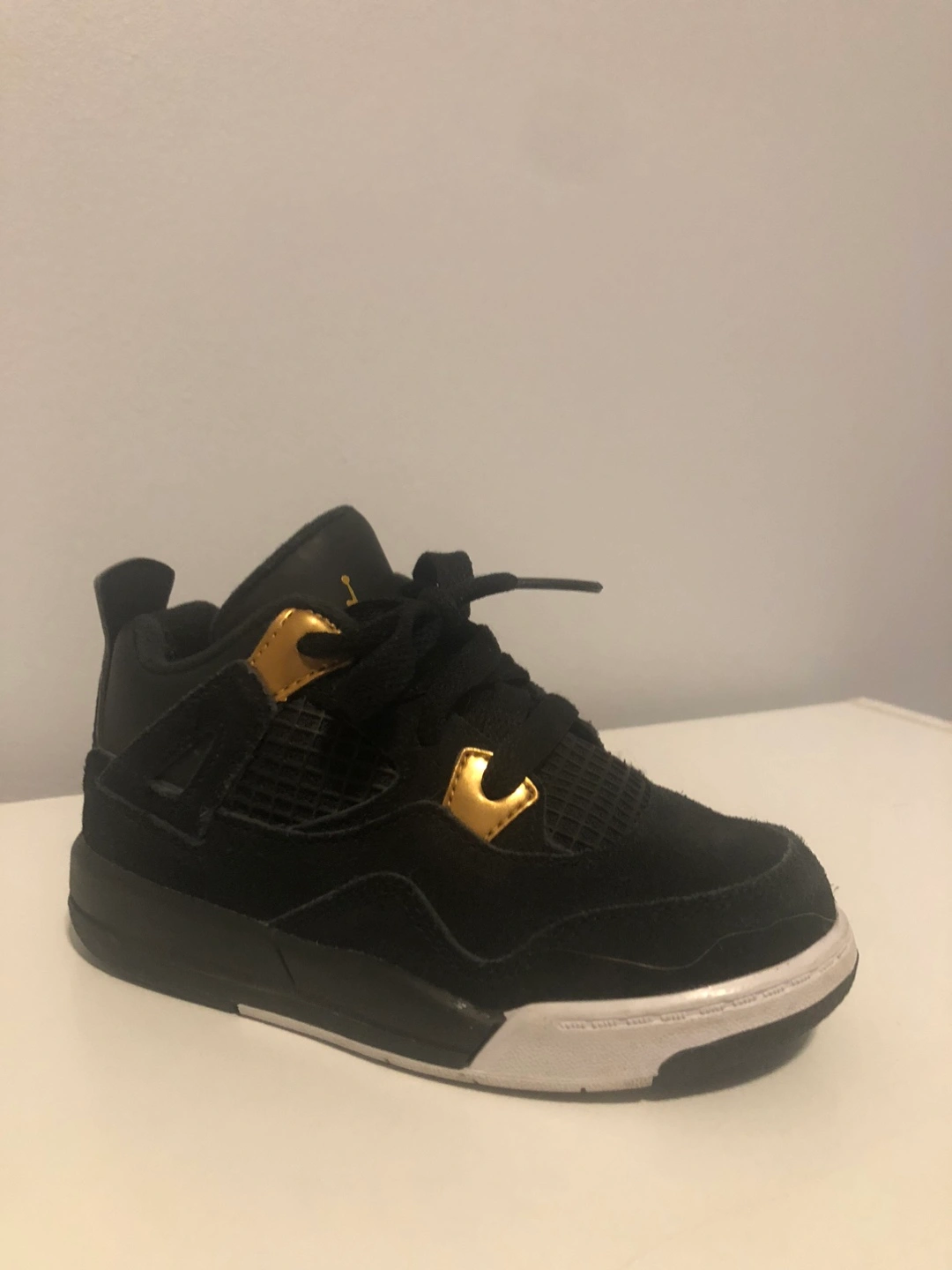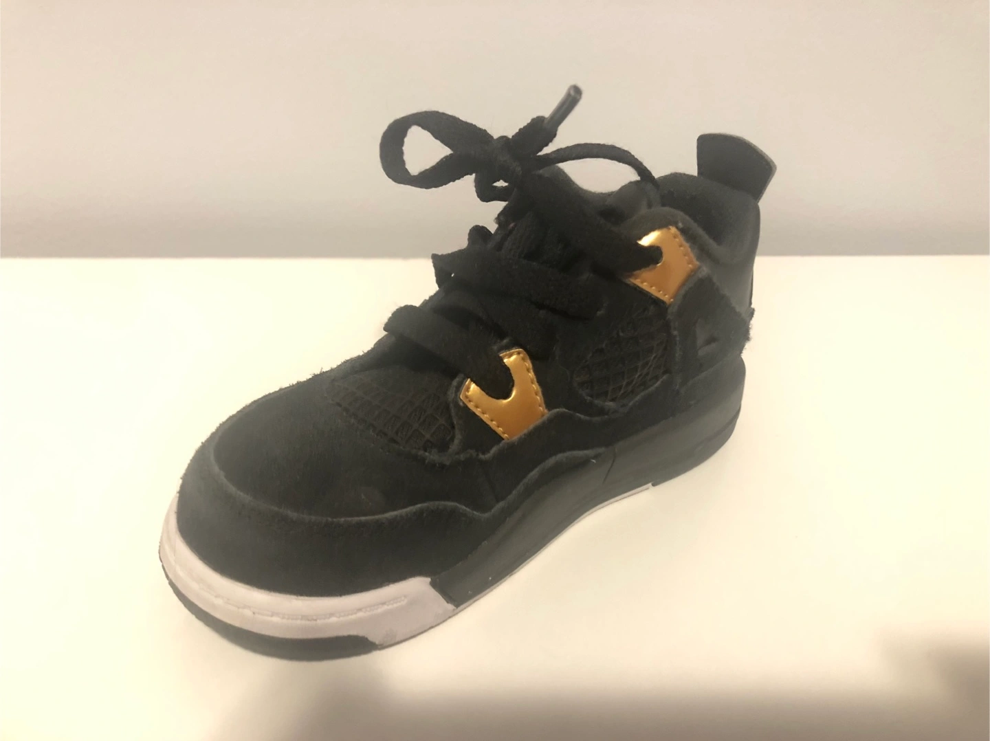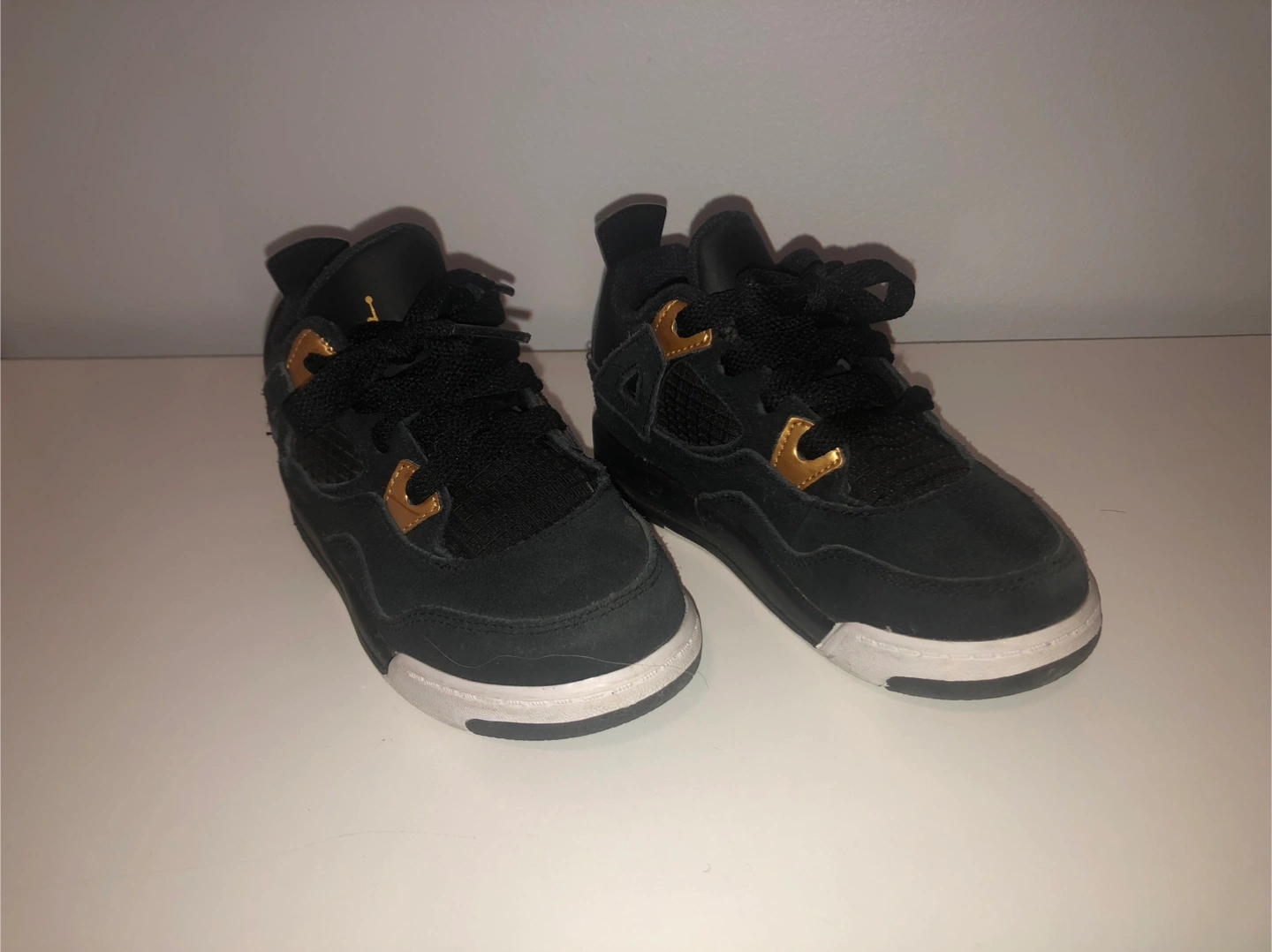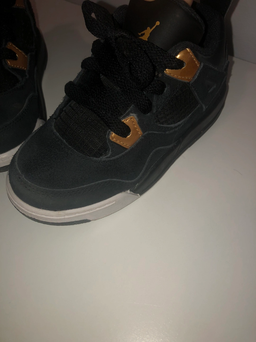 Selling a pair of Jordan 4 Retro toddler shoes in black and gold. These are in great condition and ready for a new home. Perfect for your little one! Size us 9c-uk 8.5- eur 26- 15cm