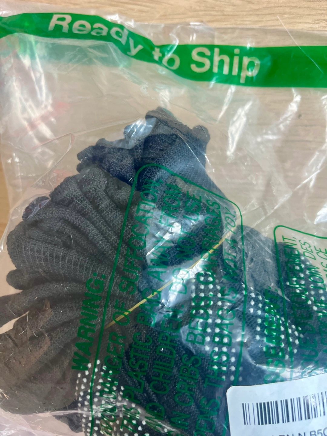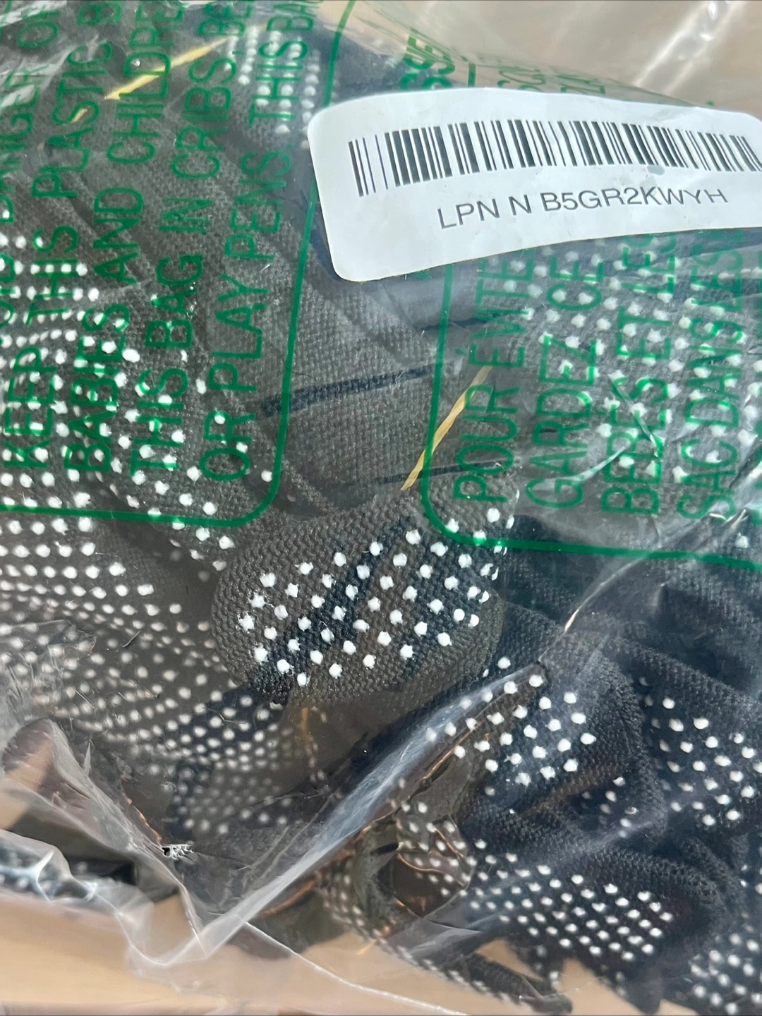 I'm selling a brand new pair of black gloves. They have a nice grip pattern with white dots. Perfect for any task where you need a good hold! Pickup downtown and cash only