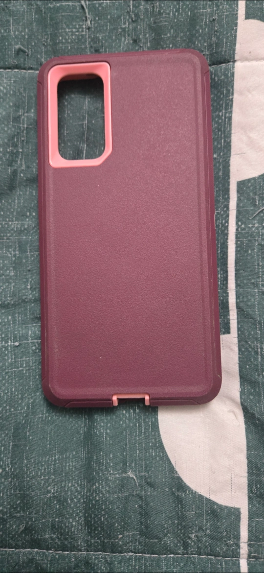 This is an dustproof phone case in a plum/pink colour combination. It's in good condition and ready to protect your phone! samsung galaxy s20 fe 5g