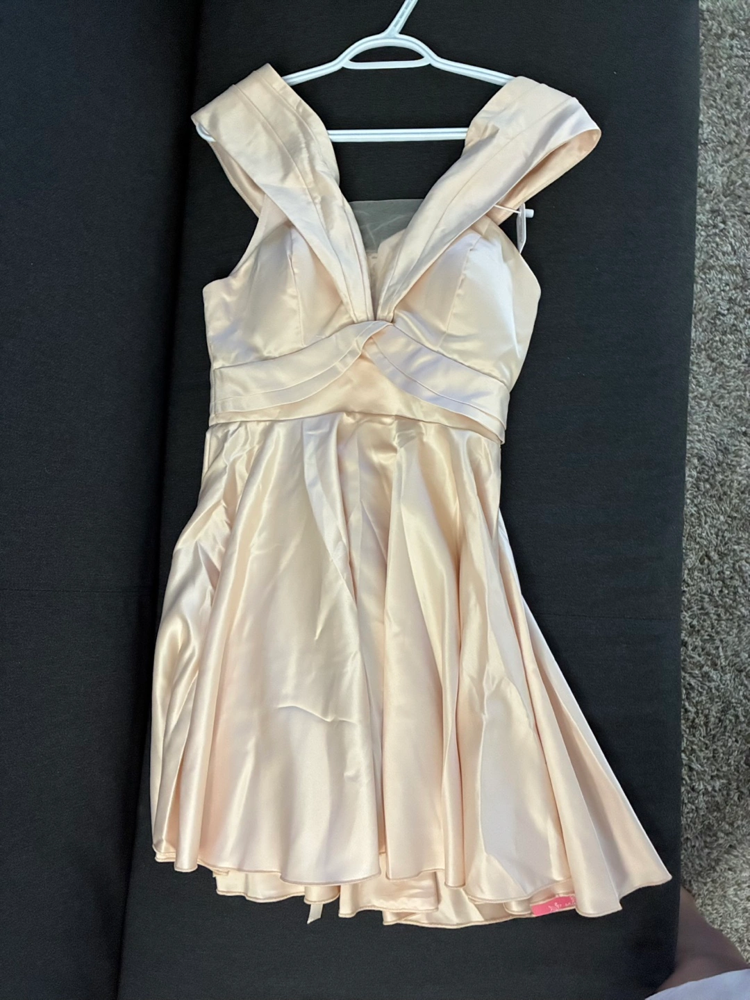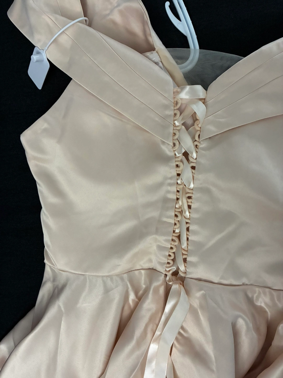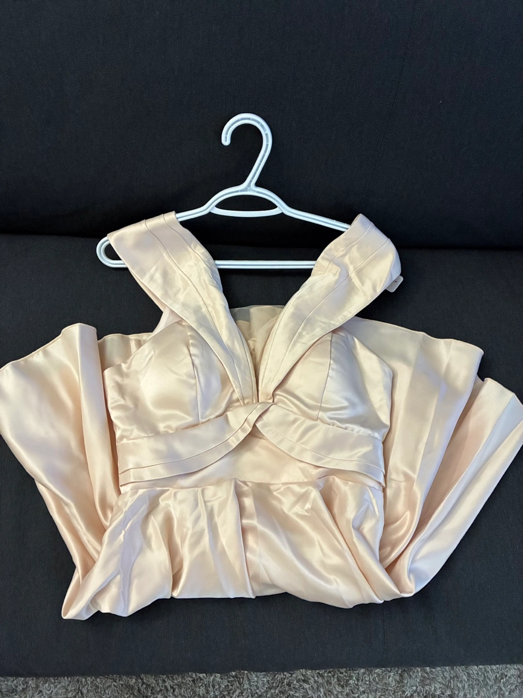 Selling a cute off-shoulder mini dress in a beautiful satin fabric! It has a flattering silhouette and a unique lace-up back detail. Perfect for parties or special occasions. Never used! So pretty in actual. Length: 70cm Waist:72cm