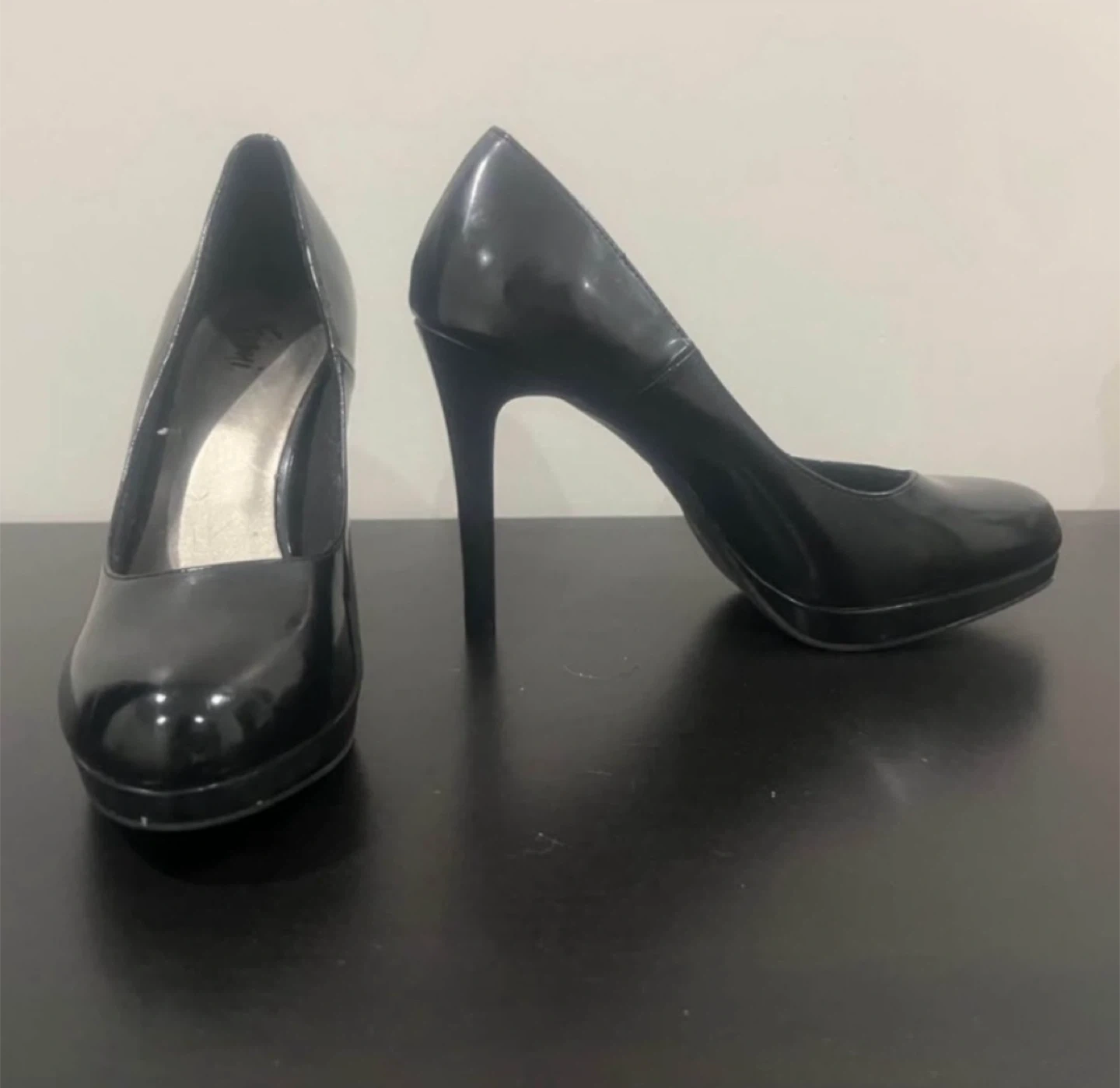 4.5in Black Glossy Heels, Size 8.5W Used in good condition, not as shiny as they used to be but still look good for wearing out. Selling for $5, originally purchased for $90. Smoke Free Home π