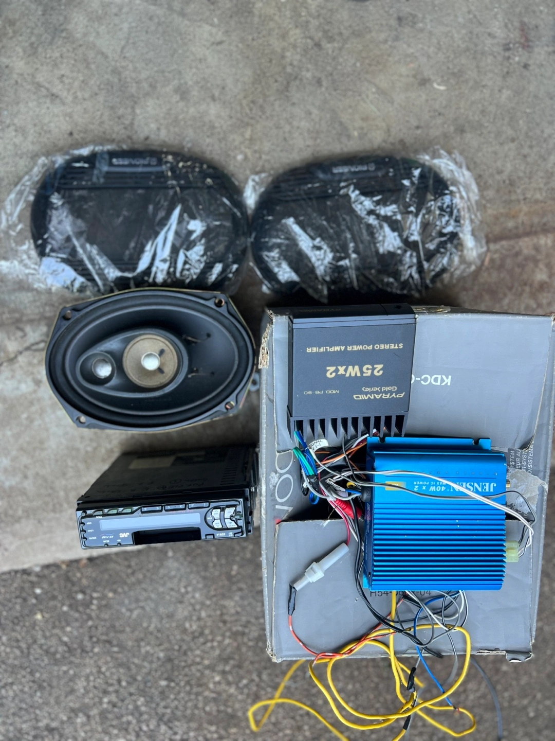 Selling a Jensen A82 stereo amplifier. It's a 40W x 2 max IC power amplifier. Also includes a JVC KS-F130 cassette receiver and a Pyramid Gold Series 25W x 2 stereo power amplifier. Also included volvo built in stereo system.