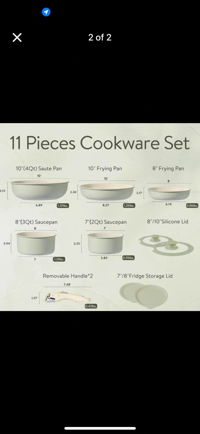 The set includes: - 10" (4Qt) Saute Pan - 10" Frying Pan - 8" Frying Pan - 8" (3Qt) Saucepan - 7" (2Qt) Saucepan - 8"/10" Silicone Lid - 7"/8" Fridge Storage Lid - Removable Handle x2
