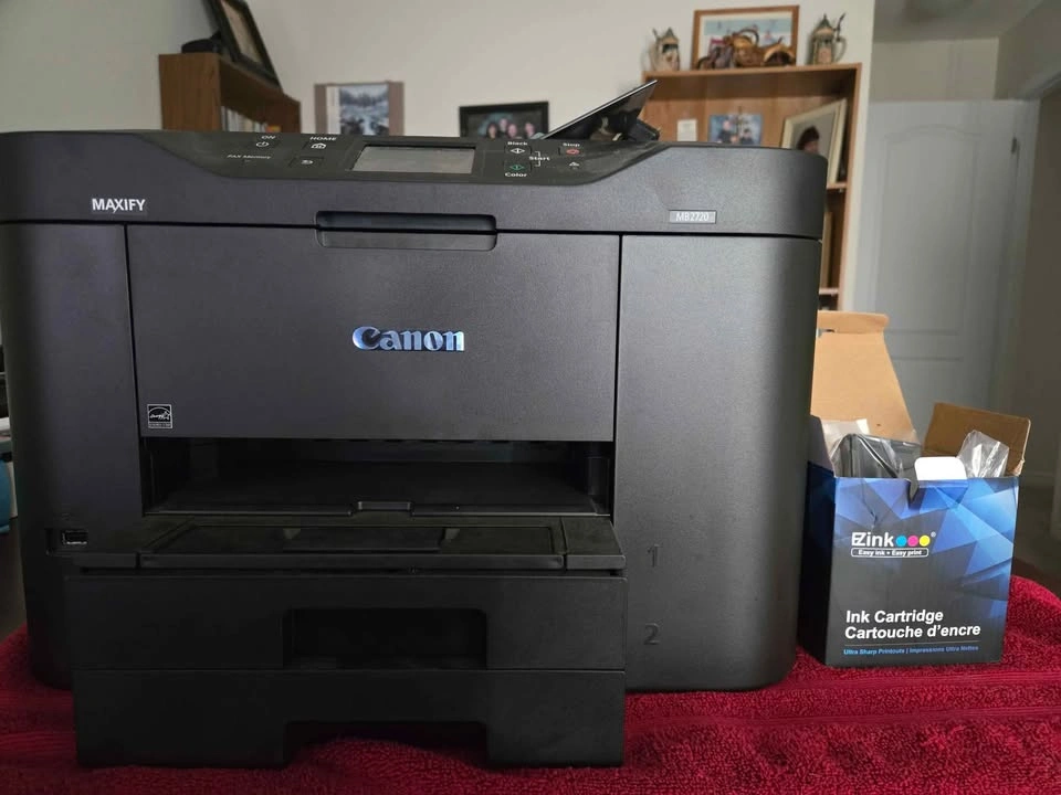 The MAXIFY MB2720 printer is the workhorse your business needs with a quick first printout time as fast as 6 seconds and fast print speeds up to 24 ipm (B&W)/15.5 ipm (Colour). Built for the big jobs, it has a large 500 sheet paper capacity and a 20,000 page duty cycle. The efficient MAXIFY ink tanks deliver a high page yield from one set of XL ink tanks and the Dual Resistant High Density (DRHD) inks produce laser sharp text that is smudge and highlighter resistant. Includes extra paper and extra ink modules.