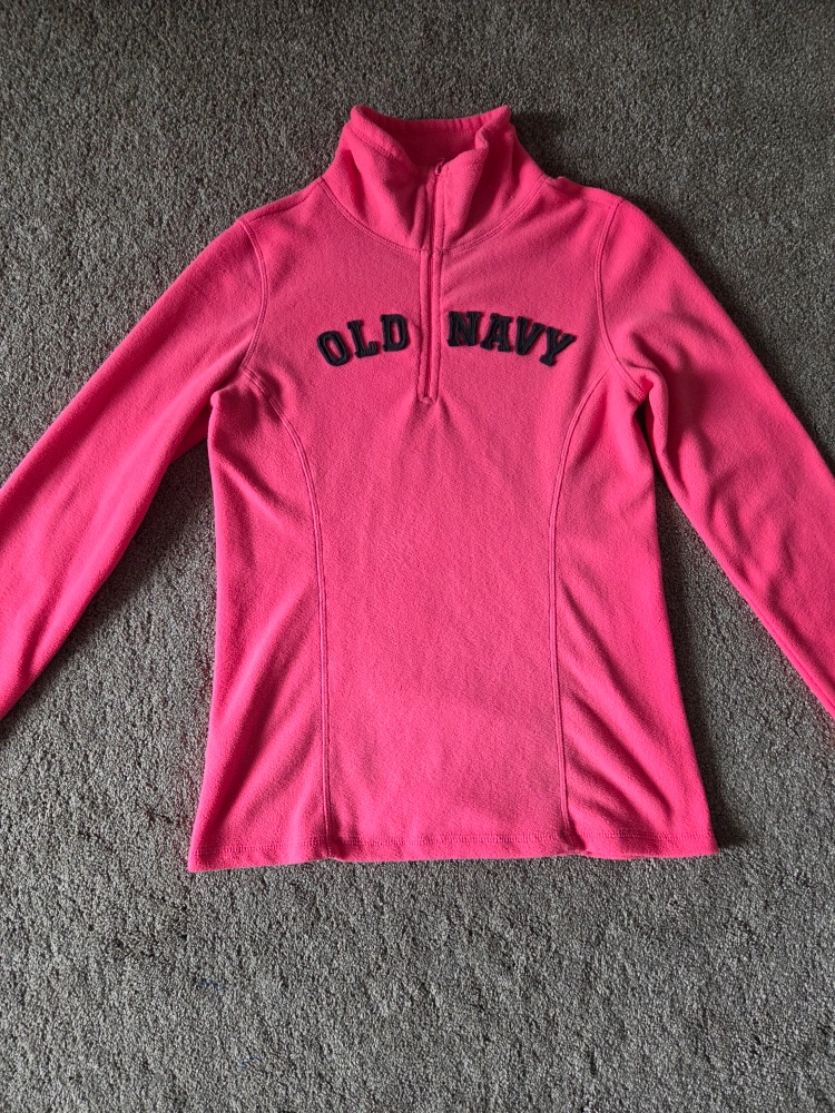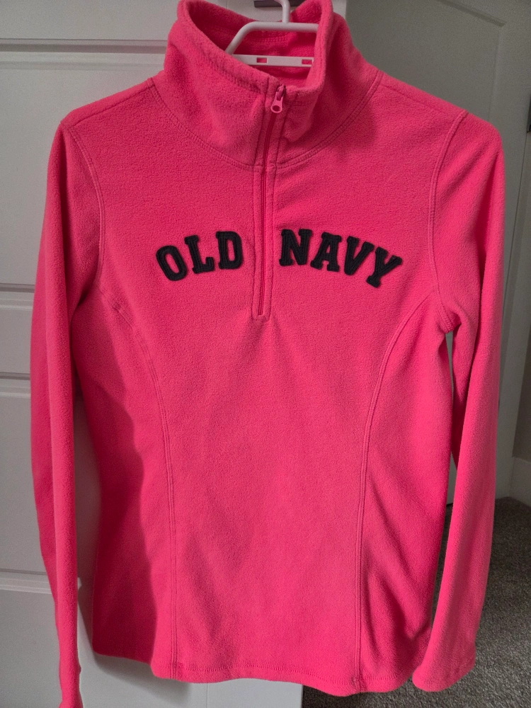 Cozy up in this bright pink Old Navy fleece pullover! It's a size small and perfect for layering on those chilly days. The material is soft and comfortable. no pet/no smoke home. if interested pick up near Gateway station, Surrey central or guilford mall. cash only pls.
