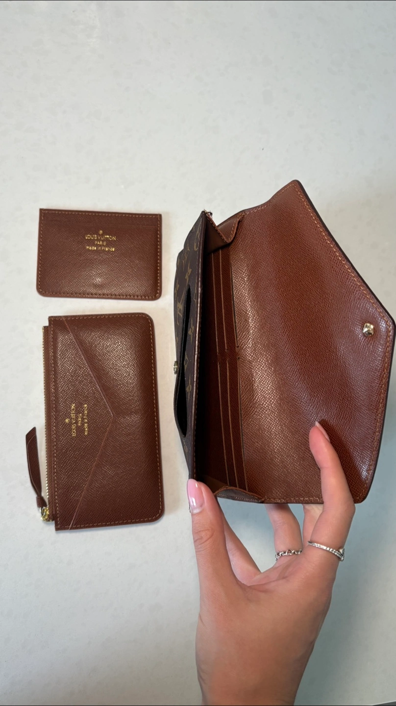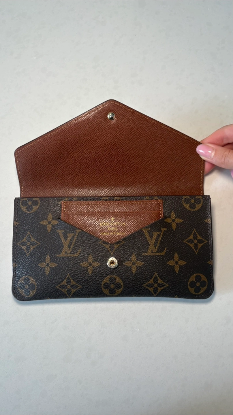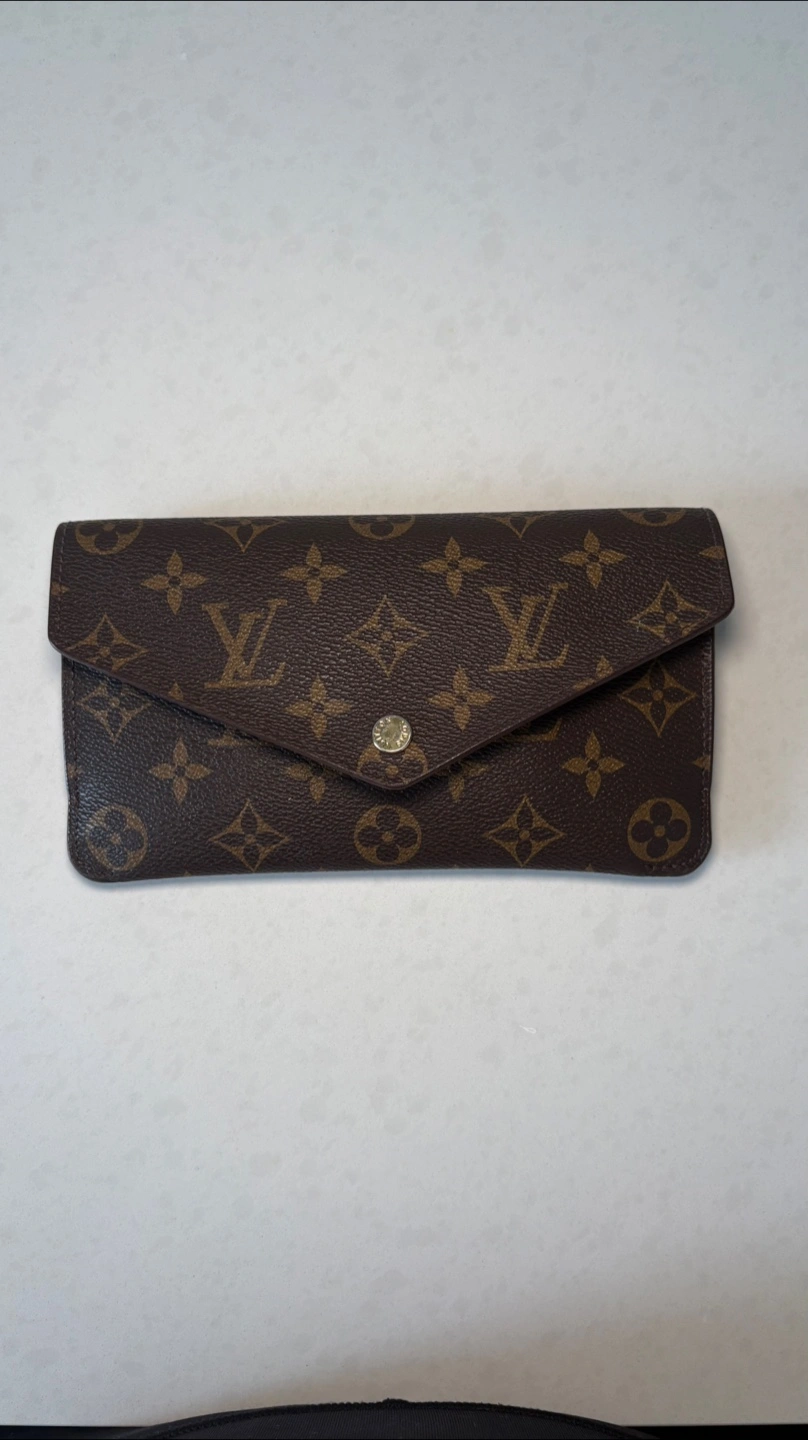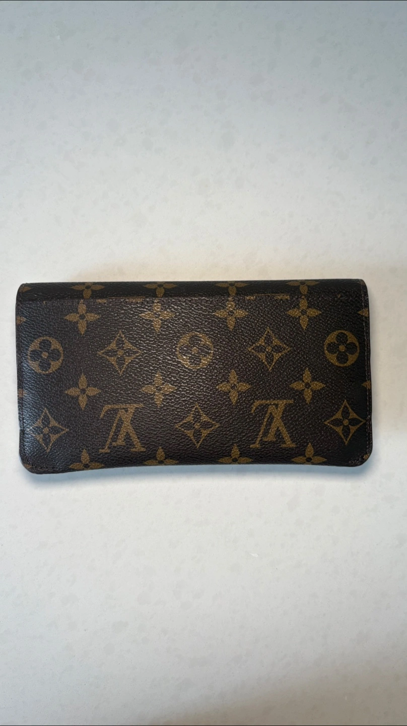 Selling a Louis Vuitton wallet in the classic brown monogram design! It's an envelope-style wallet with several compartments inside. Comes with a card holder and a zippered coin purse.