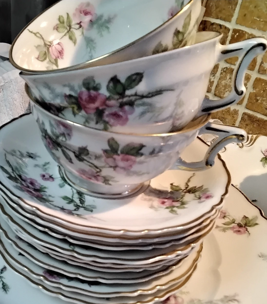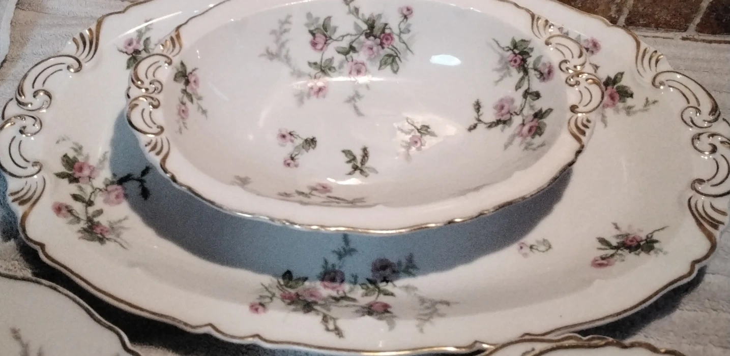 Beautiful Collection of 1930' s Haviland Sylvia, Excellent Condition There are no Chips, Cracks, Stains, Utensil Scratches or Wearing of Pattern or Trim " EXCEPT 1 SIDE PLATE SMALL CHIP " ENOUGH FOR 6 PLACE SETTINGS LESS THE TEA CUPS. Asking $467.00 Now Reduced $100.00 ABSOLUTELY NO MORE REDUCTIONS Sorry I just can't give it away Included Are: 6 x Dinner Plates 6 x Salad Plates 6 x Bread and Butter Plates 3 x Teacups 3 x Tea Saucers 1 x Large Meat Platter 1 x Veggie Dish There are Extras Plates but Sets for 6. Please Pickup Clarkson Area Mississauga Via Enclosed Porch for Easy Viewing or I offer Delivery Accepting Cash or Etransfer Only Please Please TAKE time to view my other Ads for more China Sets and Collectibles