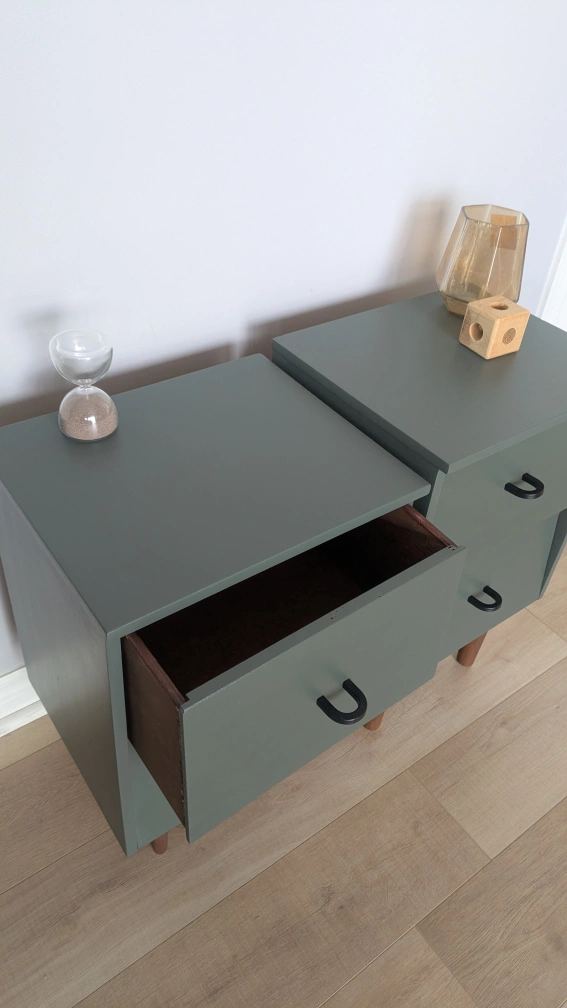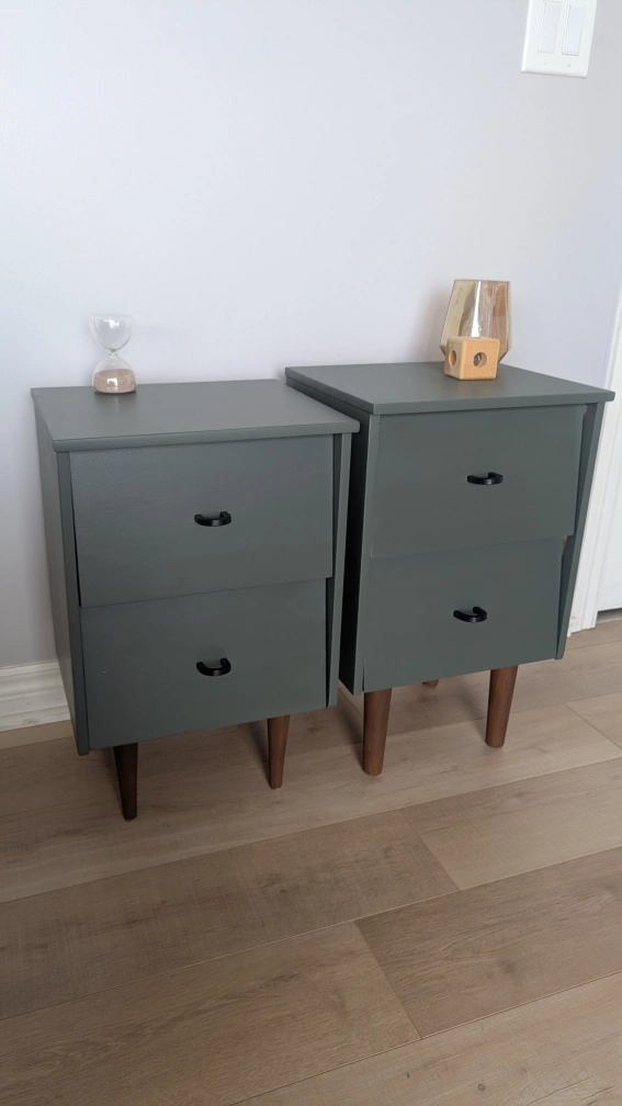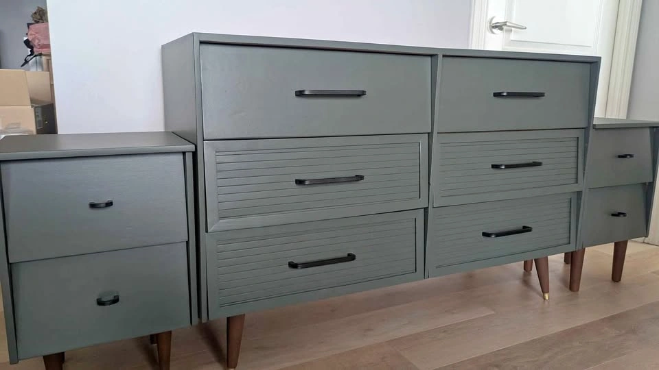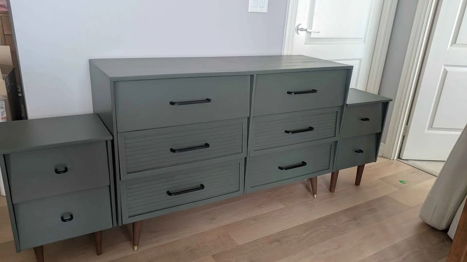MCM style dresser with 2 side tables, all 3 pieces for $400. Pick up only Measurements: Dresser: 48"L × 16"D × 31"H Side table 1: 14"L × 12"D × 22"H Side table 2: 14"L × 12"D × 22.75"H Note: the side tables are about .75" in height difference. You can't notice unless they're next to one another