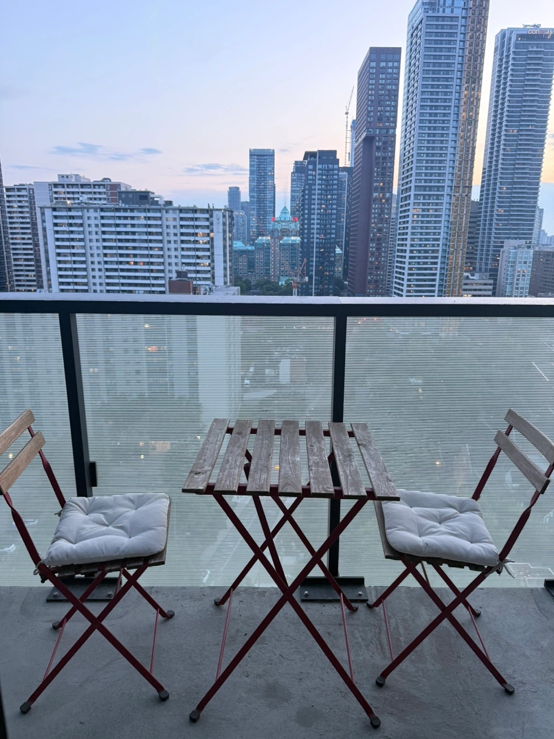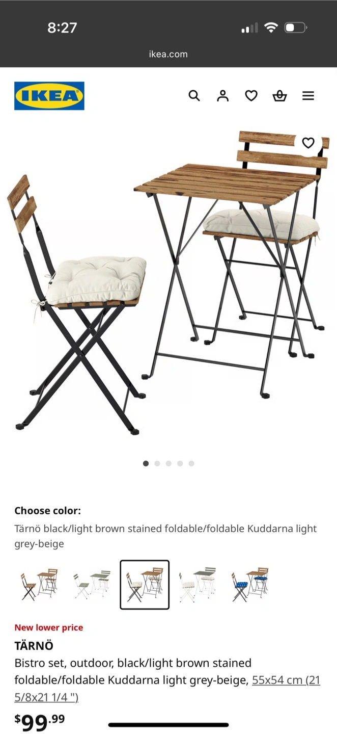 Selling my IKEA TÄRNÖ bistro set in black and light brown. It's perfect for a small balcony or patio! The set includes a foldable table and two chairs with Kuddarna light grey-beige cushions. The table is 55x54 cm (21 5/8x21 1/4 ").
