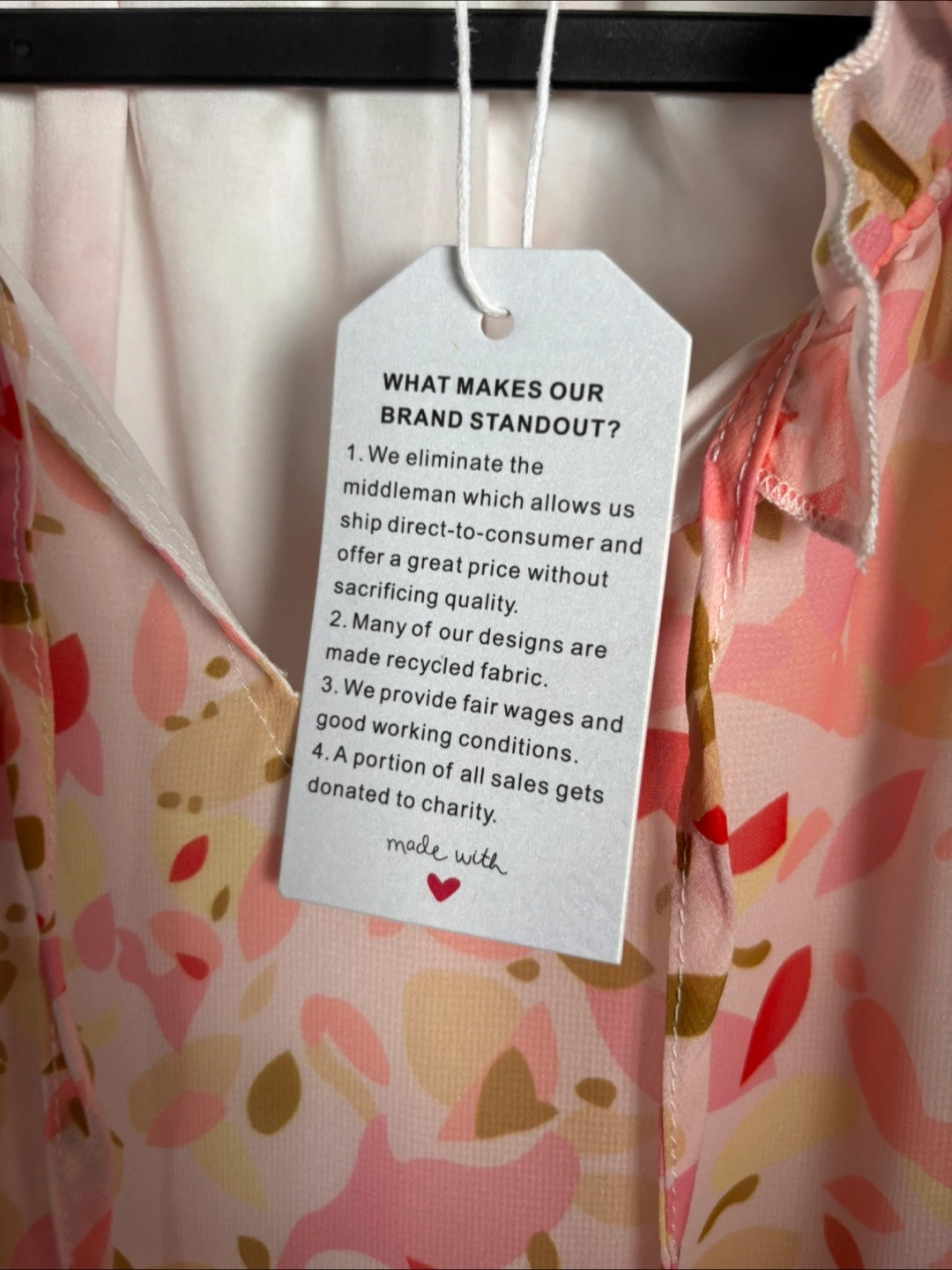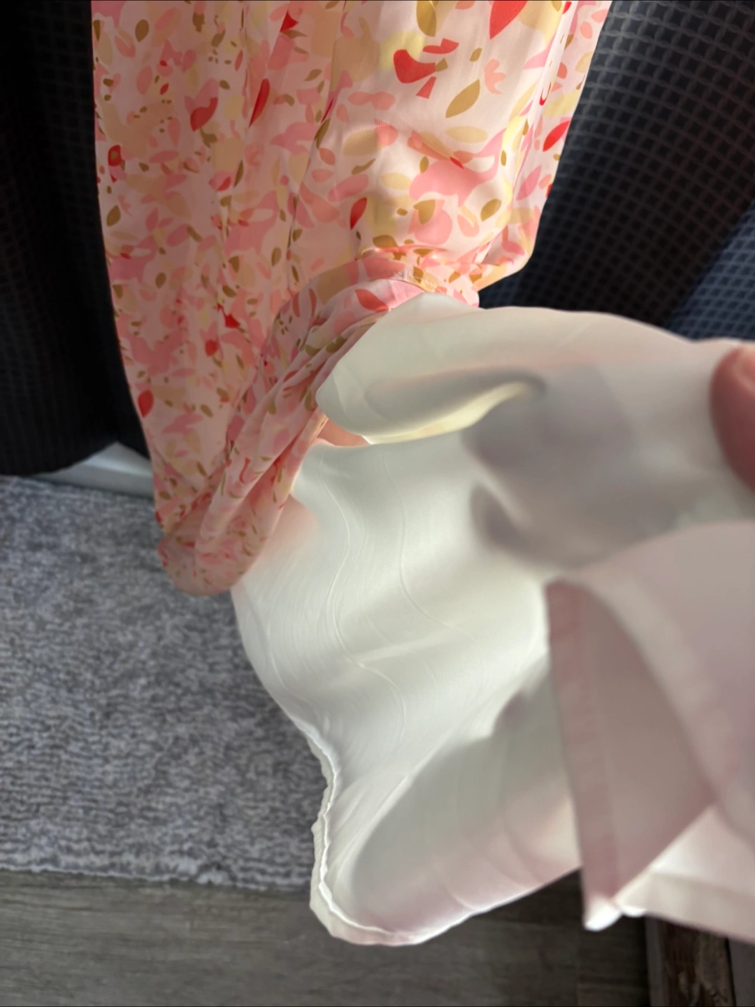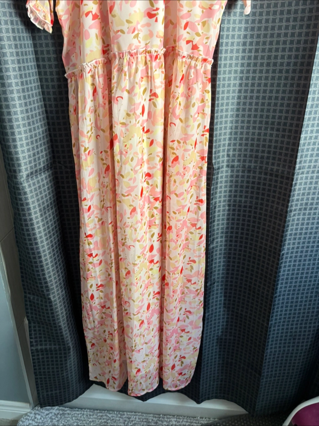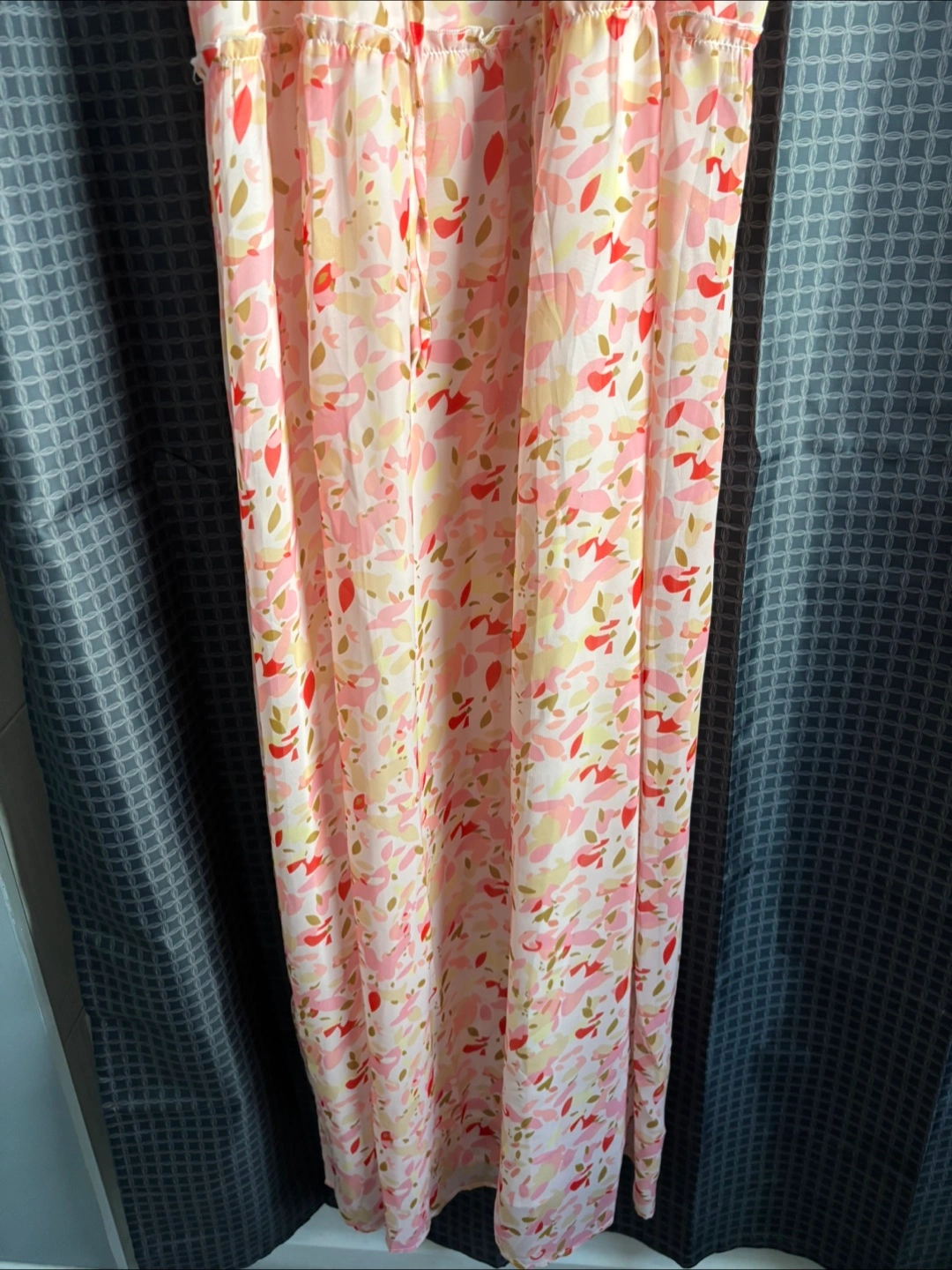 This is a pretty floral print dress! It's a size XXL(fits small more like xl) and features a lightweight material with a white lining. Perfect for a sunny day out or a casual event