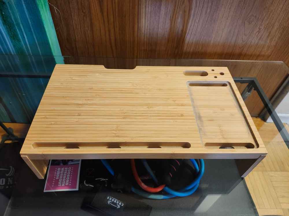 I have a barely-used, like new, bamboo laptop stand and desk organizer for sale. Has cut-out for charging cable, wireless earbuds, phone and your pens. Pick-up only near Main and Danforth