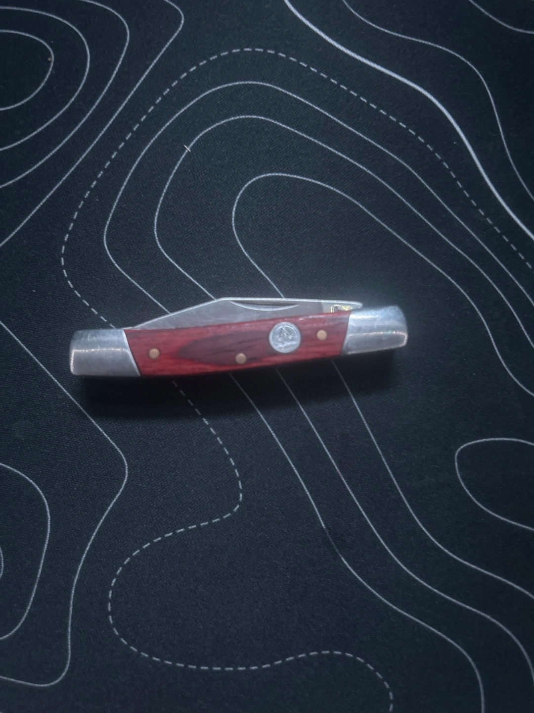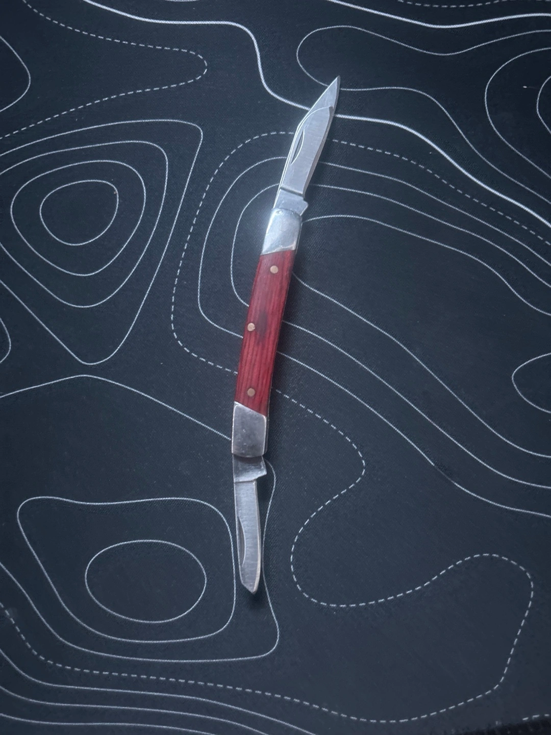 Selling a pocket knife with a wood handle. It has a classic design and is in good condition. Perfect for everyday carry or outdoor adventures!