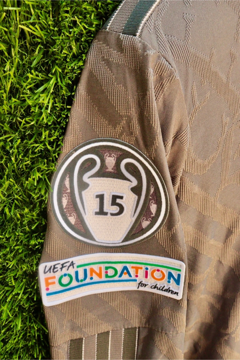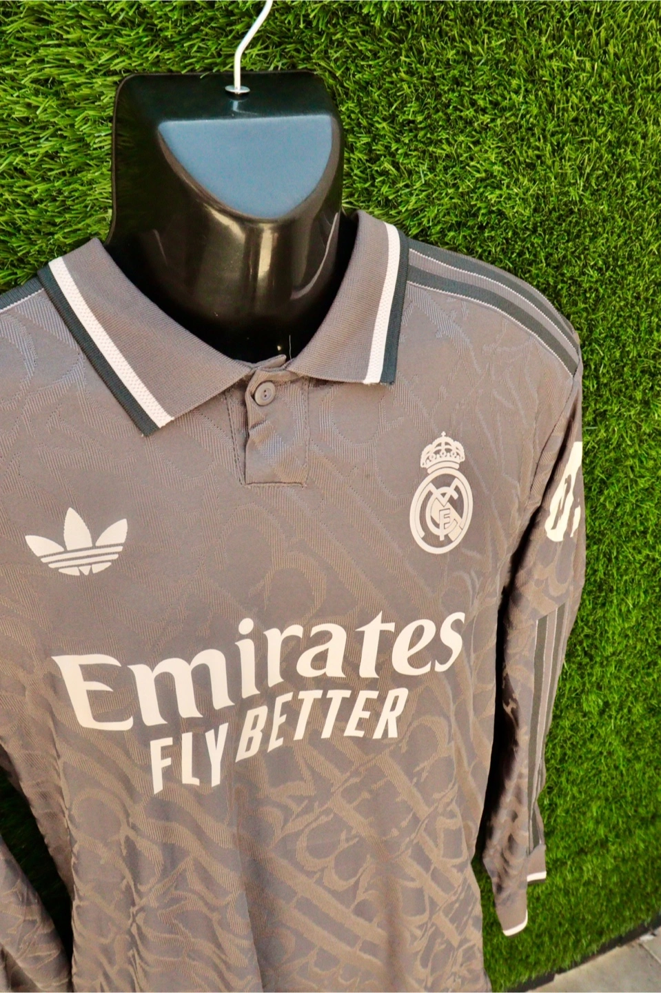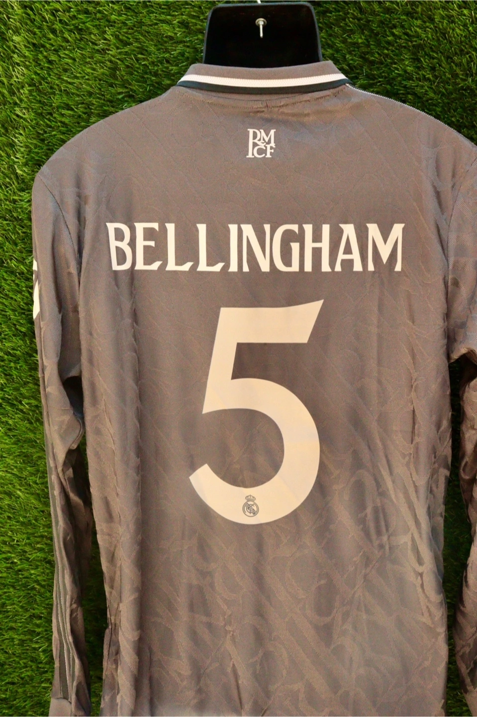 Selling a Real Madrid long sleeve jersey with Bellingham #5 on the back. It features the Adidas logo and Emirates Fly Better sponsor logo on the front. Also has the UEFA Foundation for children badge on the sleeve. Great for any Real Madrid fan!