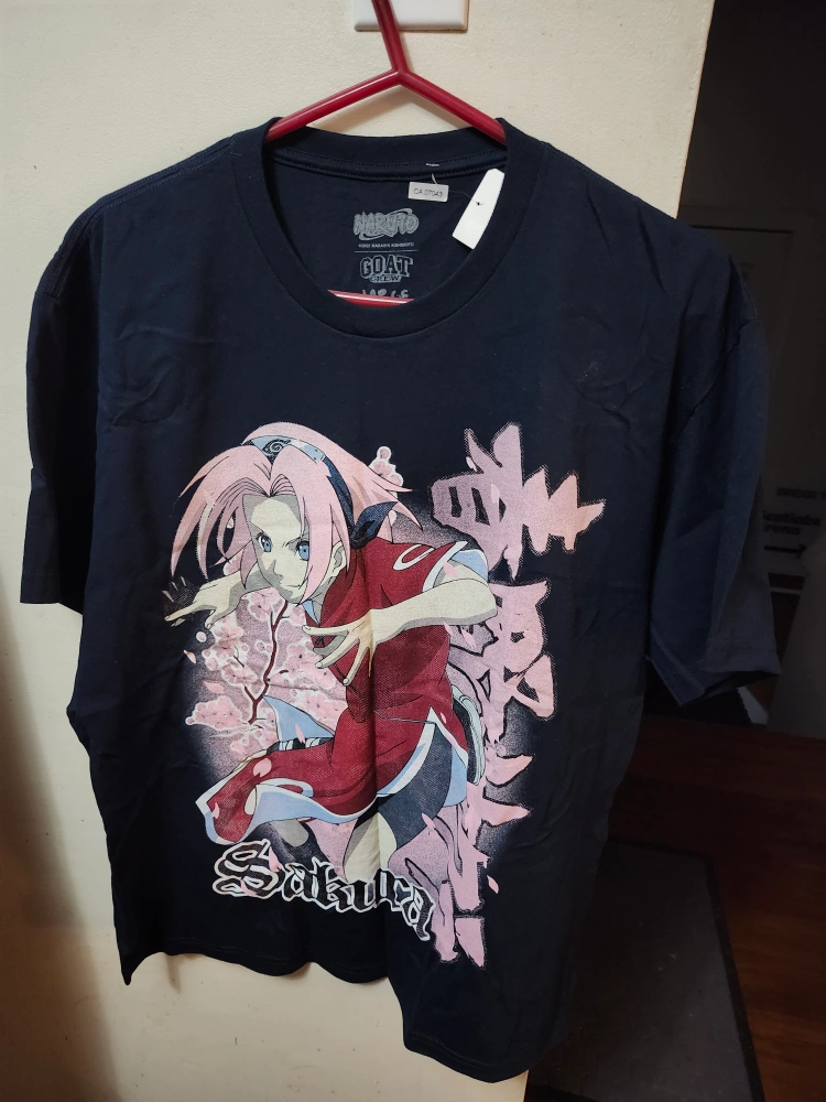 Up for grabs is a Naruto t-shirt featuring Sakura! It's a size large and Brand New Perfect for any Naruto fan looking to add to their collection Back to back prints