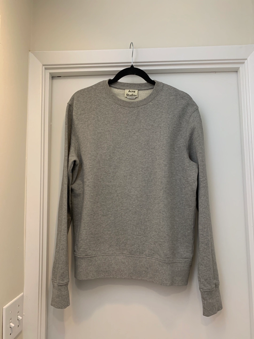 Selling an Acne Studios Casey sweatshirt in grey. It's in great condition and made in Portugal. The material is 100% cotton with some elastane.