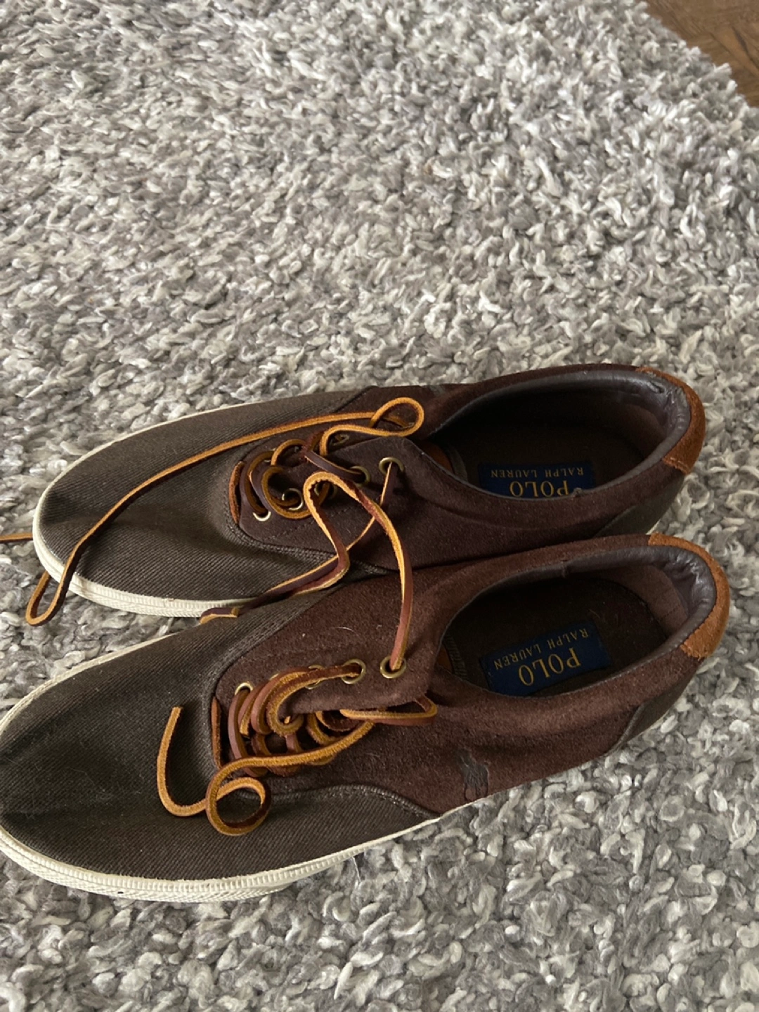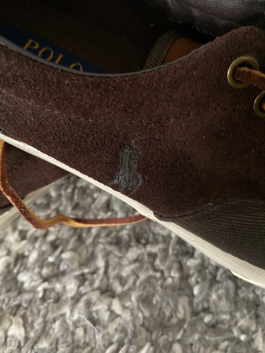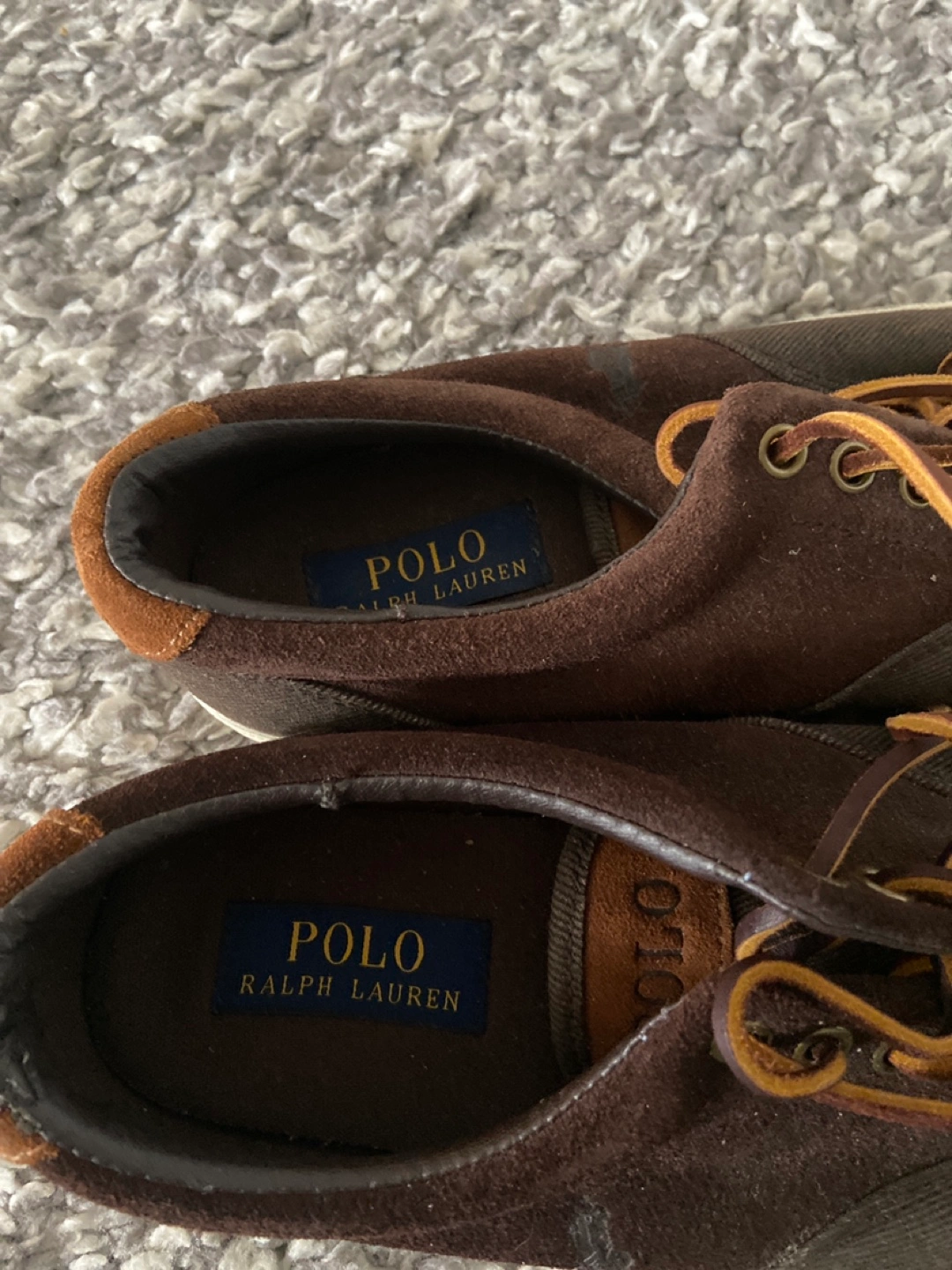 Selling a pair of Polo Ralph Lauren Vaughn Suede shoes in size 8D. They're a stylish and comfortable pair of shoes, perfect for casual wear. The upper is made of twill and suede, with a canvas and PU lining. They have a classic look with the Polo logo detail