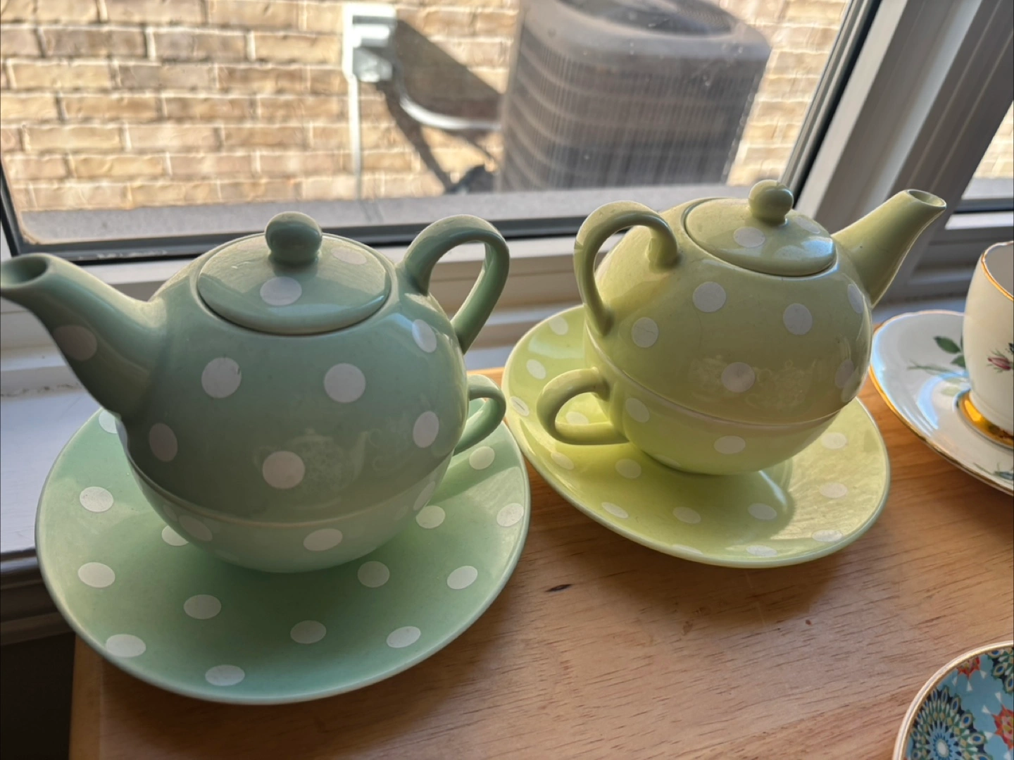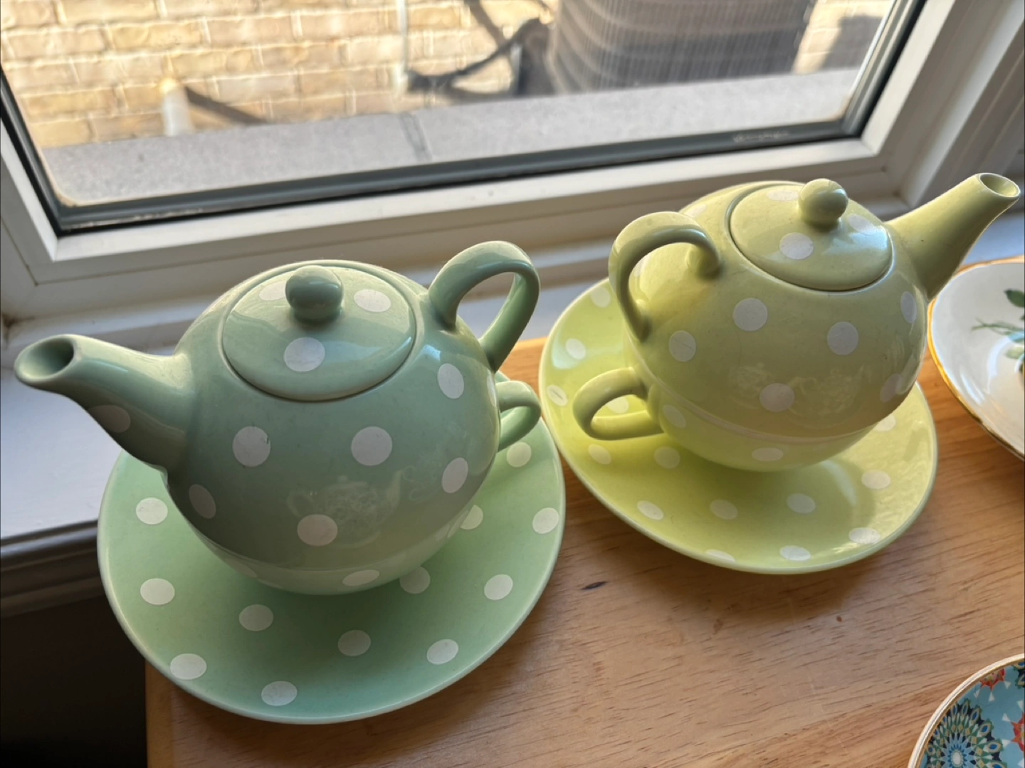I'm selling this adorable polka dot teapot set! It's in great condition and would look lovely in any kitchen or as a decorative piece. The set includes a teapot and a matching saucer. It's perfect for tea lovers or anyone who appreciates vintage-inspired decor