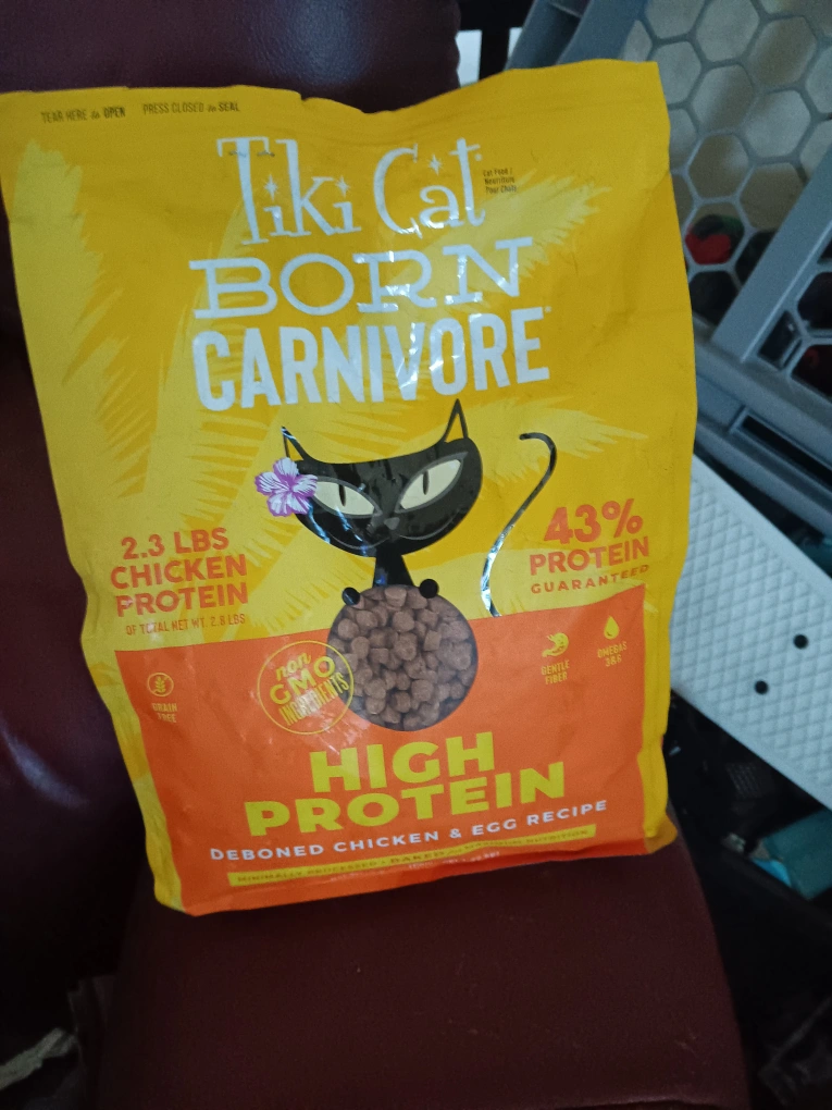 Selling a bag of Tiki Cat Born Carnivore cat food. It's a high-protein recipe made with deboned chicken and egg. The bag contains 2.3 lbs of chicken protein (total net weight 2.8 lbs). It's grain-free and made with non-GMO ingredients open bag asking 5 dollars 647-203-0411