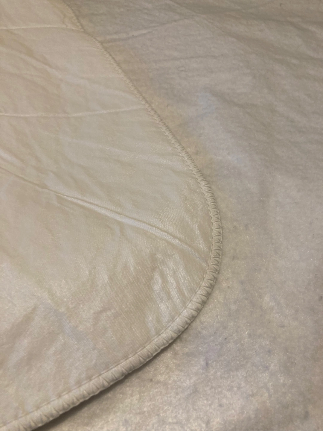 I think this is for potential bedwetting and other spills. Flannel on one side and some sort of laminate on other. I have laundered it, there are no stains but a couple of small holes from age. I think this is vintage; it has been in storage a while but definitely very usable and good quality. But full twin size length and prolly intended to rest in middle of mattress: it’s your if you need it!🙂
