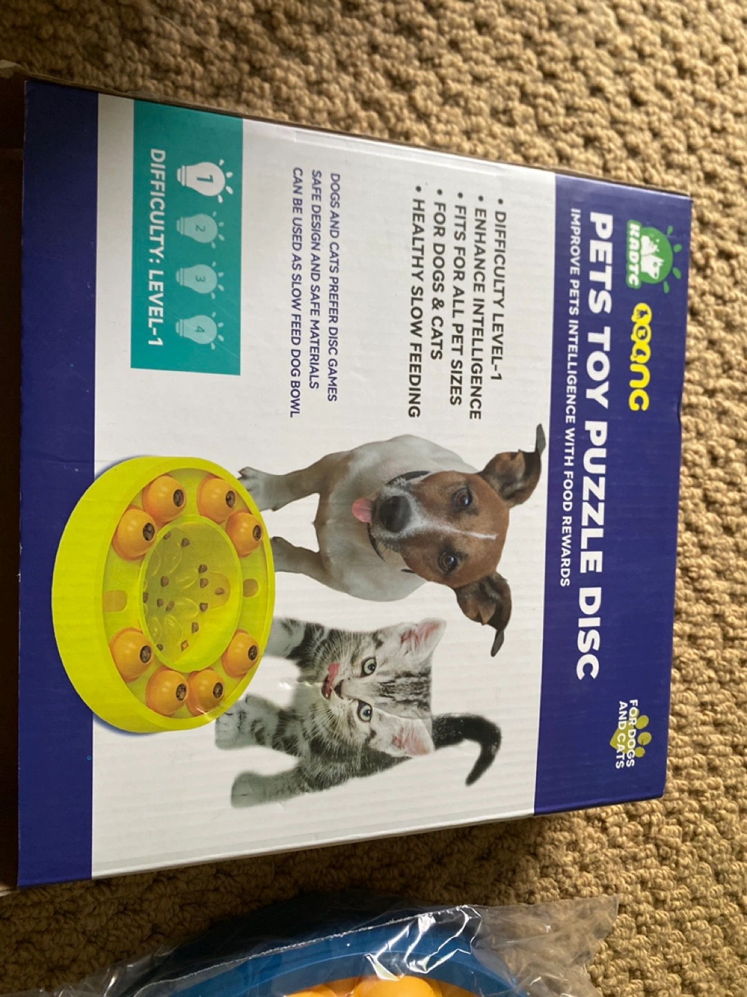 I'm selling a brand new KADTC Goang Pets Toy Puzzle Disc! It's a Level-1 difficulty puzzle disc designed to enhance intelligence in both dogs and cats. It's suitable for all sizes of pets and promotes healthy slow feeding! The box is included. Similar : https://www.walmart.com/ip/TIOASH-Pet-Puzzle-Toys-Puppy-Treat-Food-Feeder-Dog-Enrichment-Toys-Slow-Feeder-Bowl-Pets-Puppy-IQ-Training-Mental-Enrichment-Interactive-Treat-Dispen/16547665452?classType=VARIANT&from=%2Fsearch&sid=b0134a5a-4f00-446e-8710-8529ef6b65f7