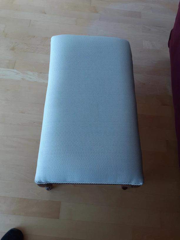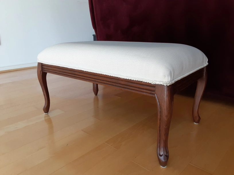 Selling an antique-style wooden footstool. It features a cream-coloured cushion and dark wood legs. Perfect for adding a touch of elegance to your living space!