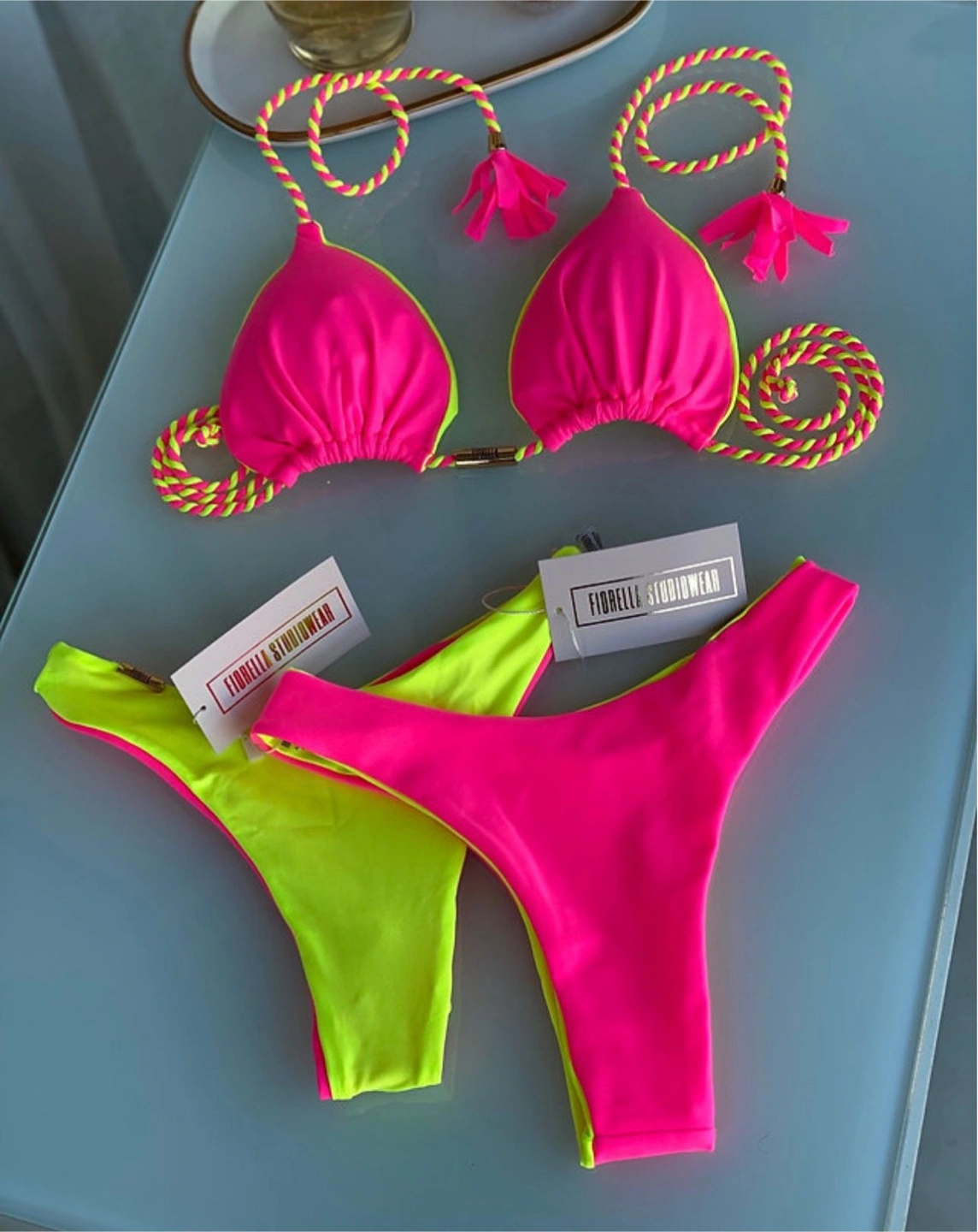 Super cute bikini set from Fiorella Studiowear! The colours are a vibrant neon pink and yellow. Perfect for summer!