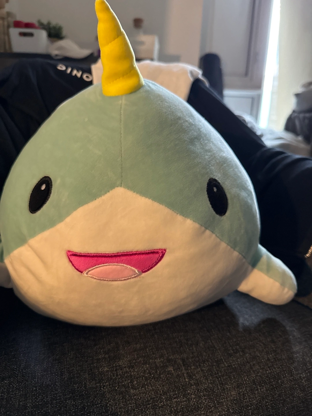 A super cute narwhal plushie looking for a new home! It's in great condition and ready for cuddles. Its soft and huggable, perfect for kids or anyone who loves adorable sea creatures