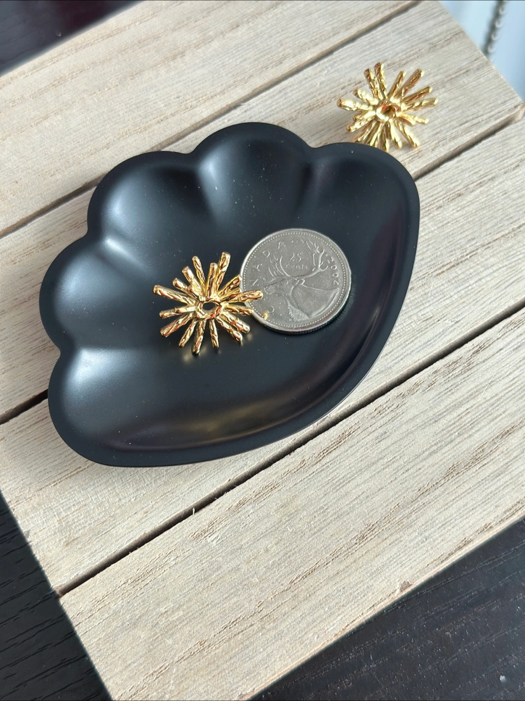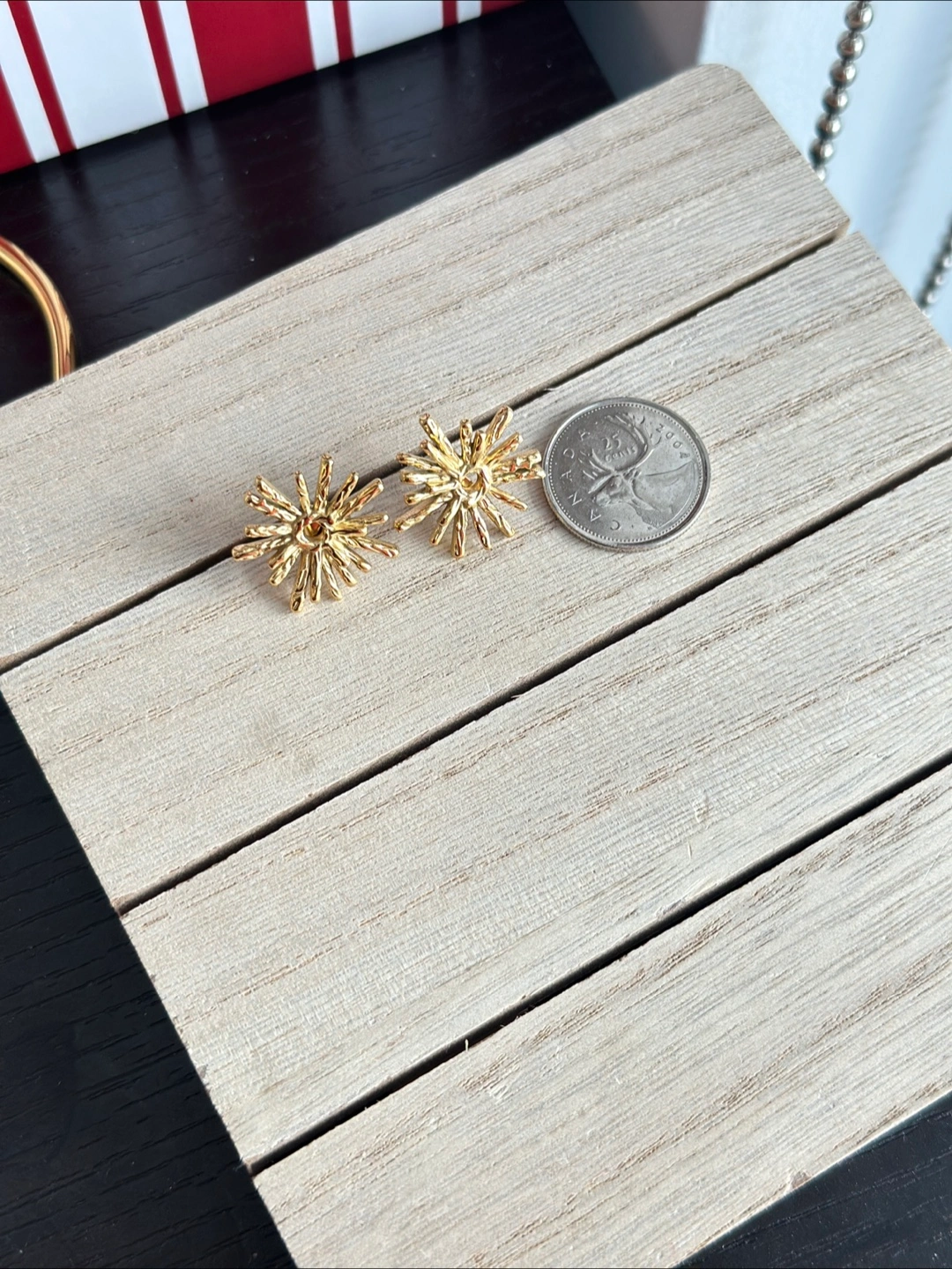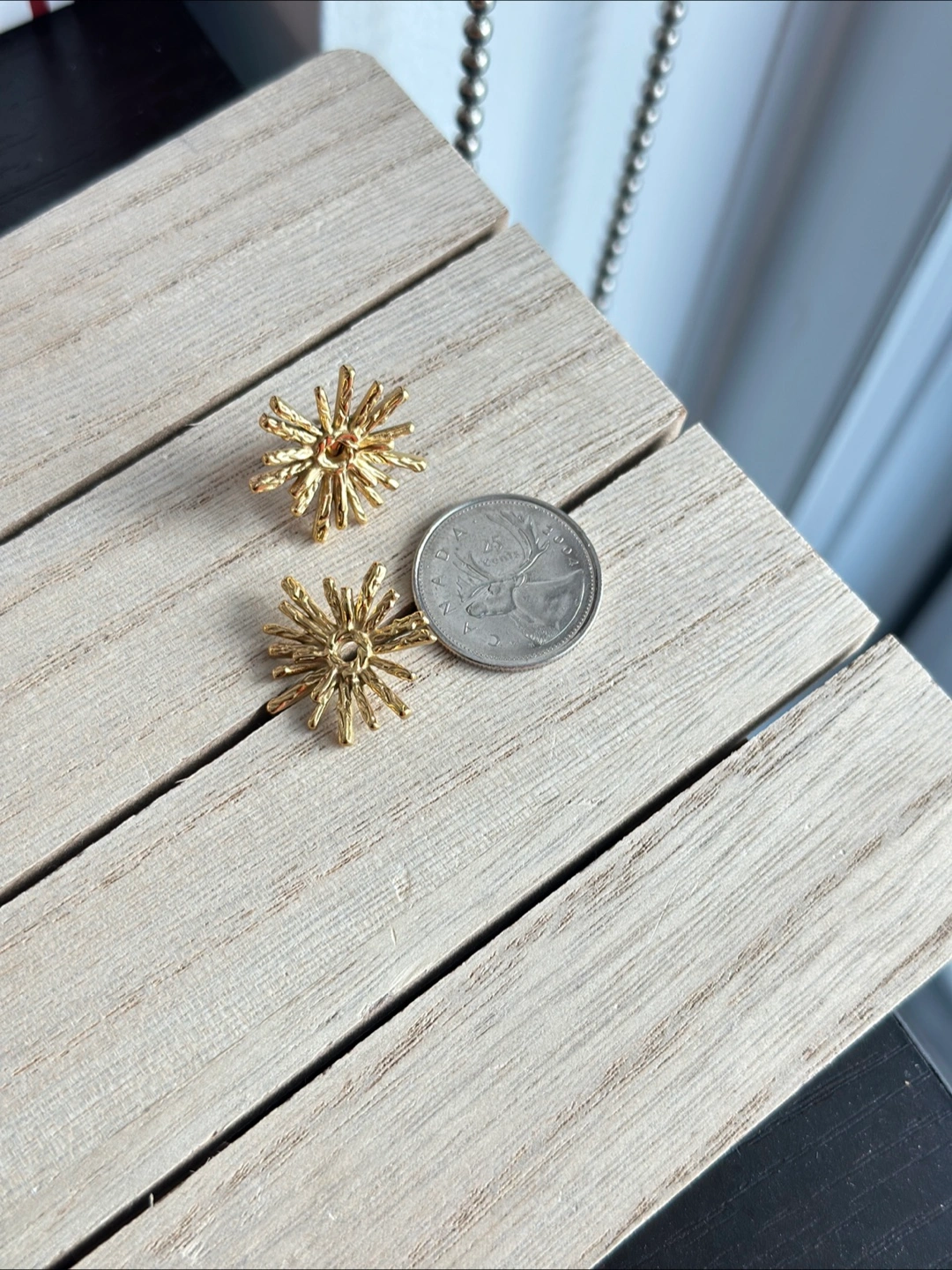 New item - Selling a pair of gold stud earrings. They are in great condition and have a unique spiky design. Perfect for adding a touch of elegance to any outfit!