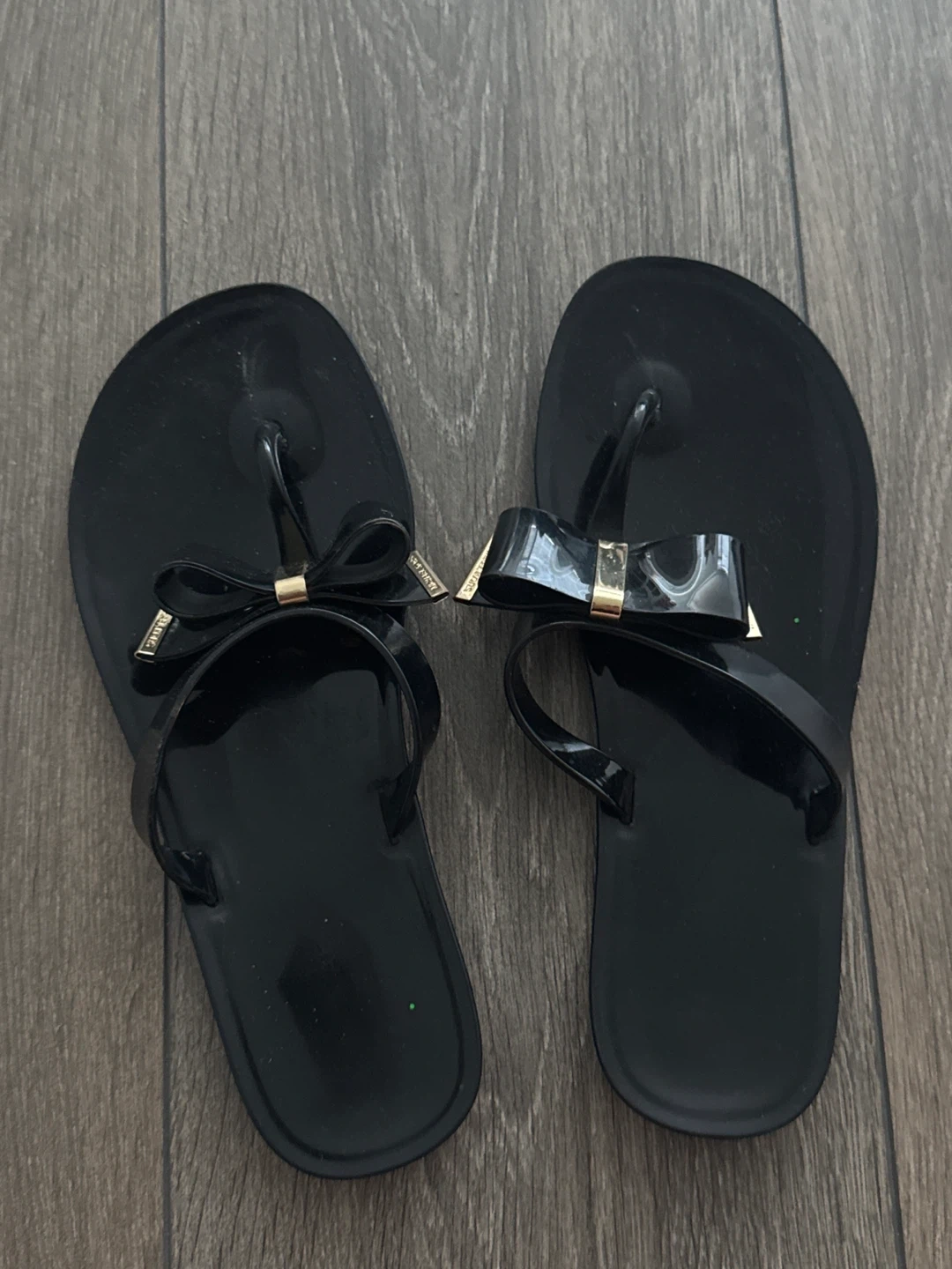 Cute Michael Kors black jelly flip flops! They have a bow detail on the top. Great for summer!
