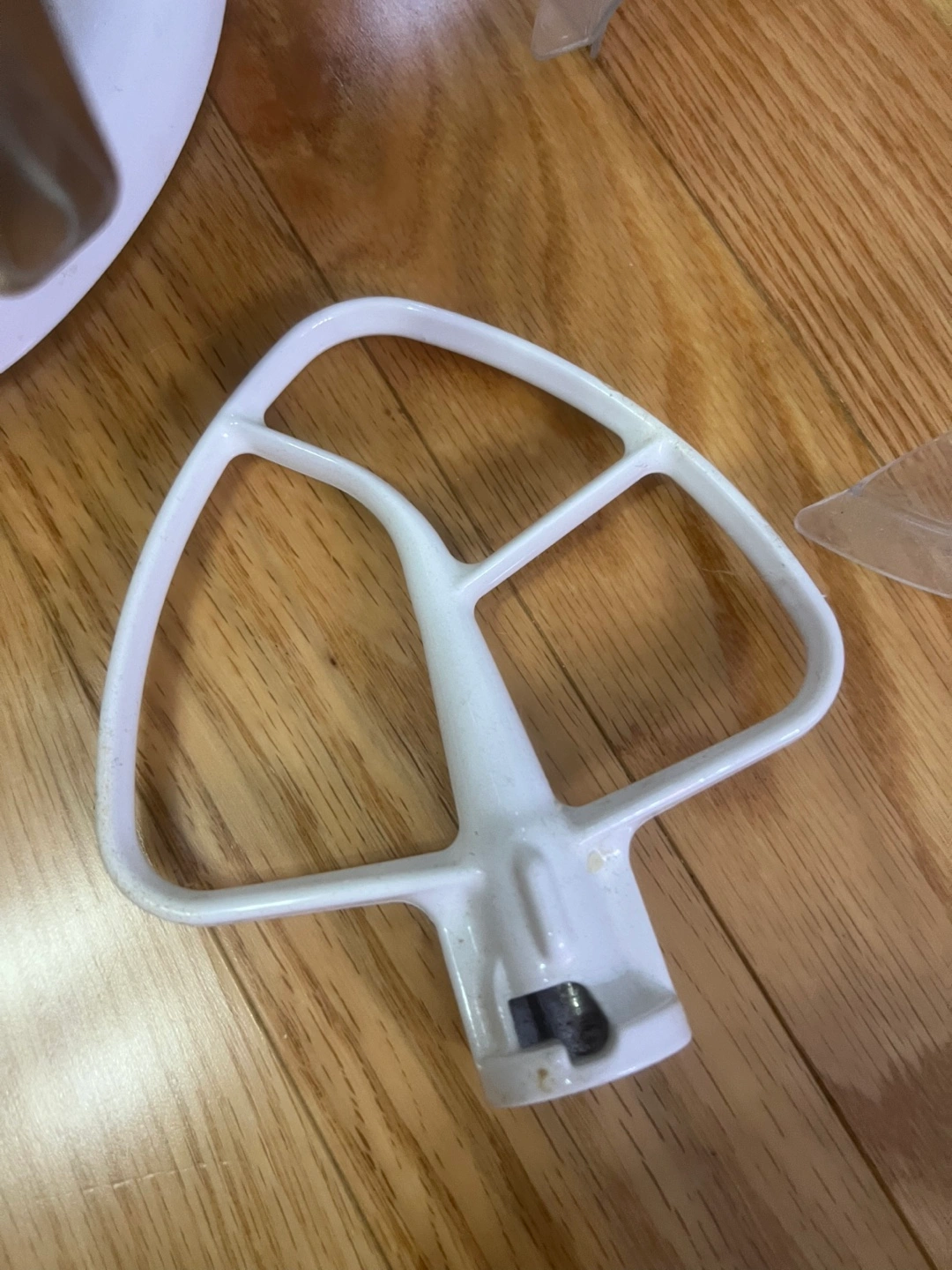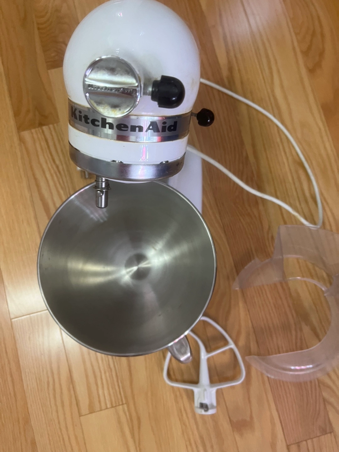 Selling a KitchenAid stand mixer. It's white and comes with the bowl, paddle attachment, and pouring shield. It's in good condition and ready for your baking adventures!