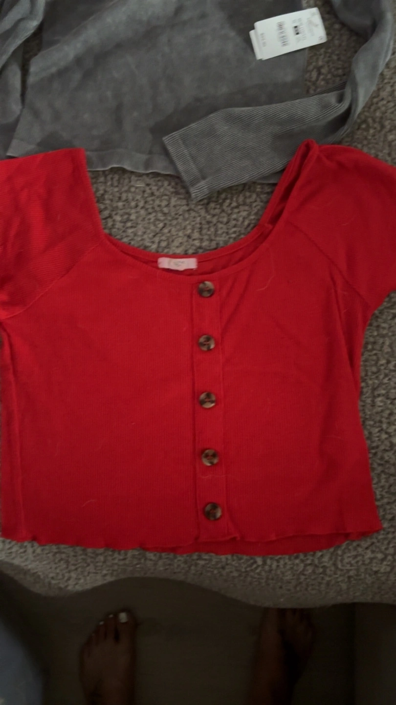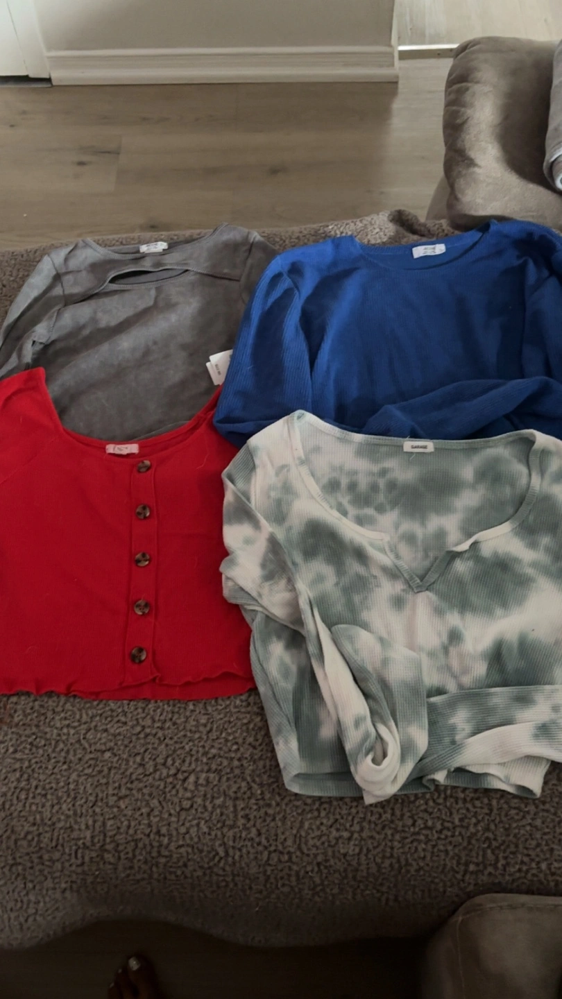 Selling a bundle of 4 cute tops! There's a red button-down from Aerie and three tops from Garage. All in great condition and ready for a new home!