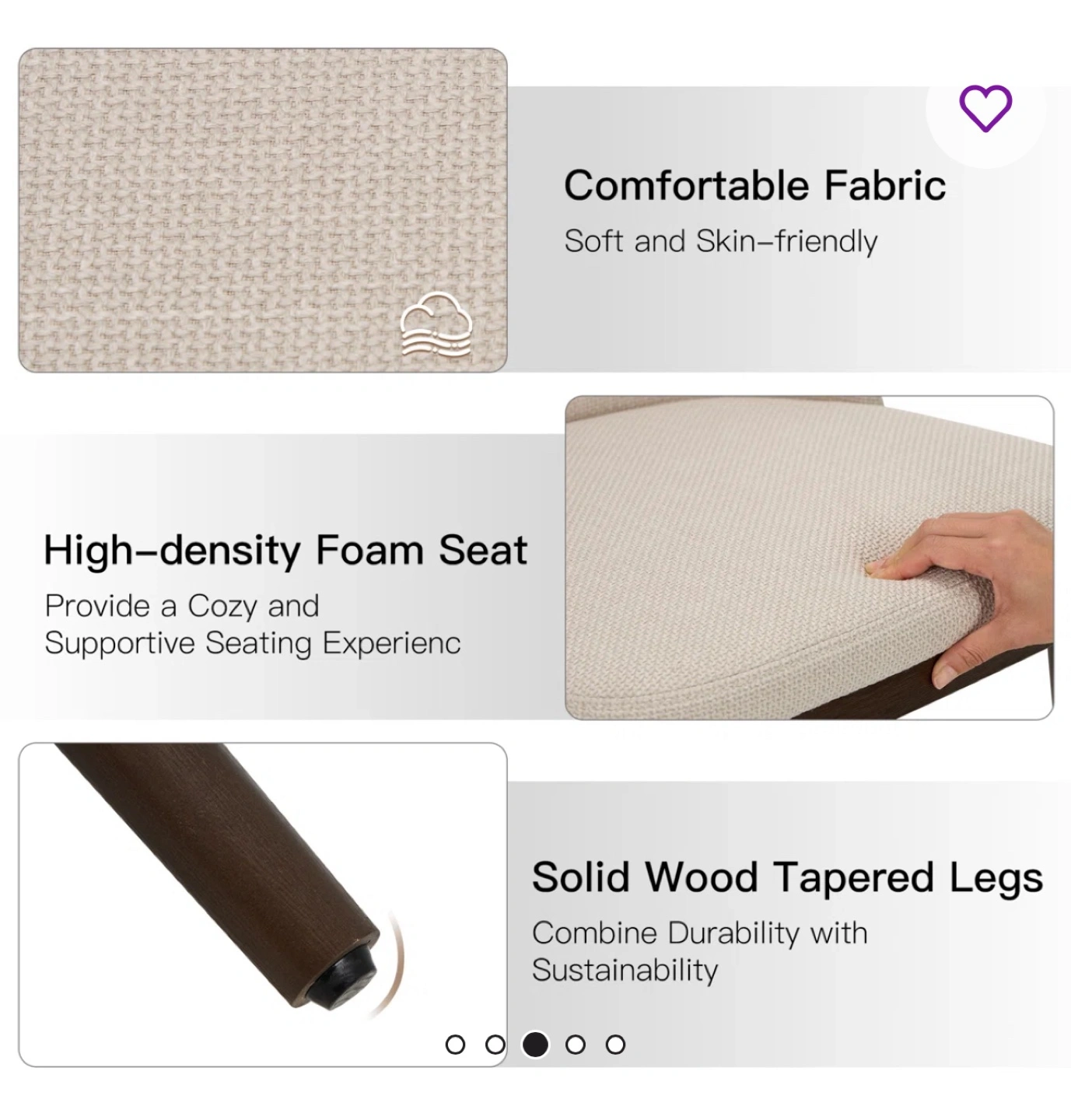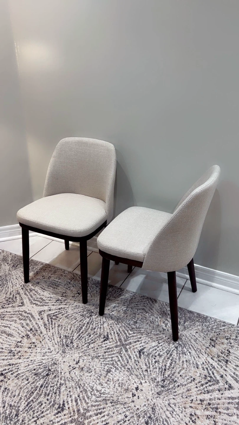 Upholstered Solid Wood Fabric Chair (Set of 2) Brand New just assembled $140 The soft fabric is comfortable and breathable Solid wood frame is strong and durable The curved back of the chair is ergonomic, and you will not feel tired when you sit for a long time Cushions on the back and seat provide a soft sitting feel Easy to assemble and can be easily completed by one person Pickup bovaird and Great Lakes Brampton