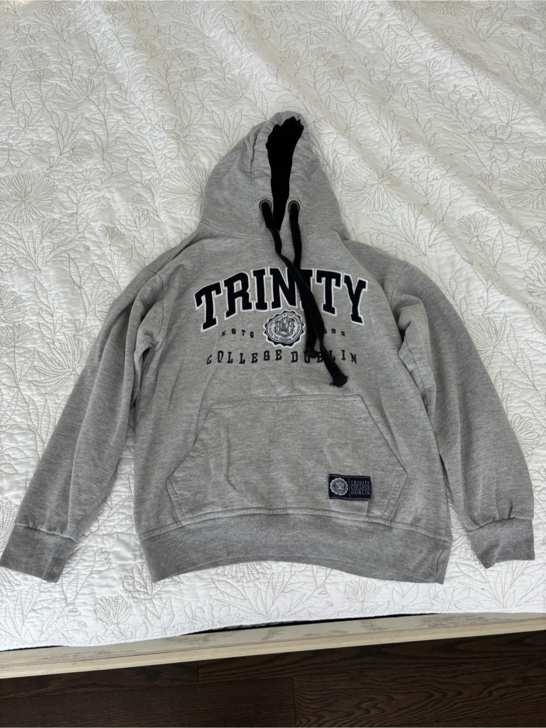 Classic Trinity College Dublin hoodie โ a must-have for any student, alum, or university merch collector. Size: Small Color: Heather Grey with bold black & white logo Features: Front kangaroo pocket, adjustable drawstring hood, soft interior Condition: Excellent, lightly used, very comfortable and warm A great keepsake or gift for anyone connected to TCD. ๐ฒ Asking: $30 Pickup in Oakville, only serious inquiries