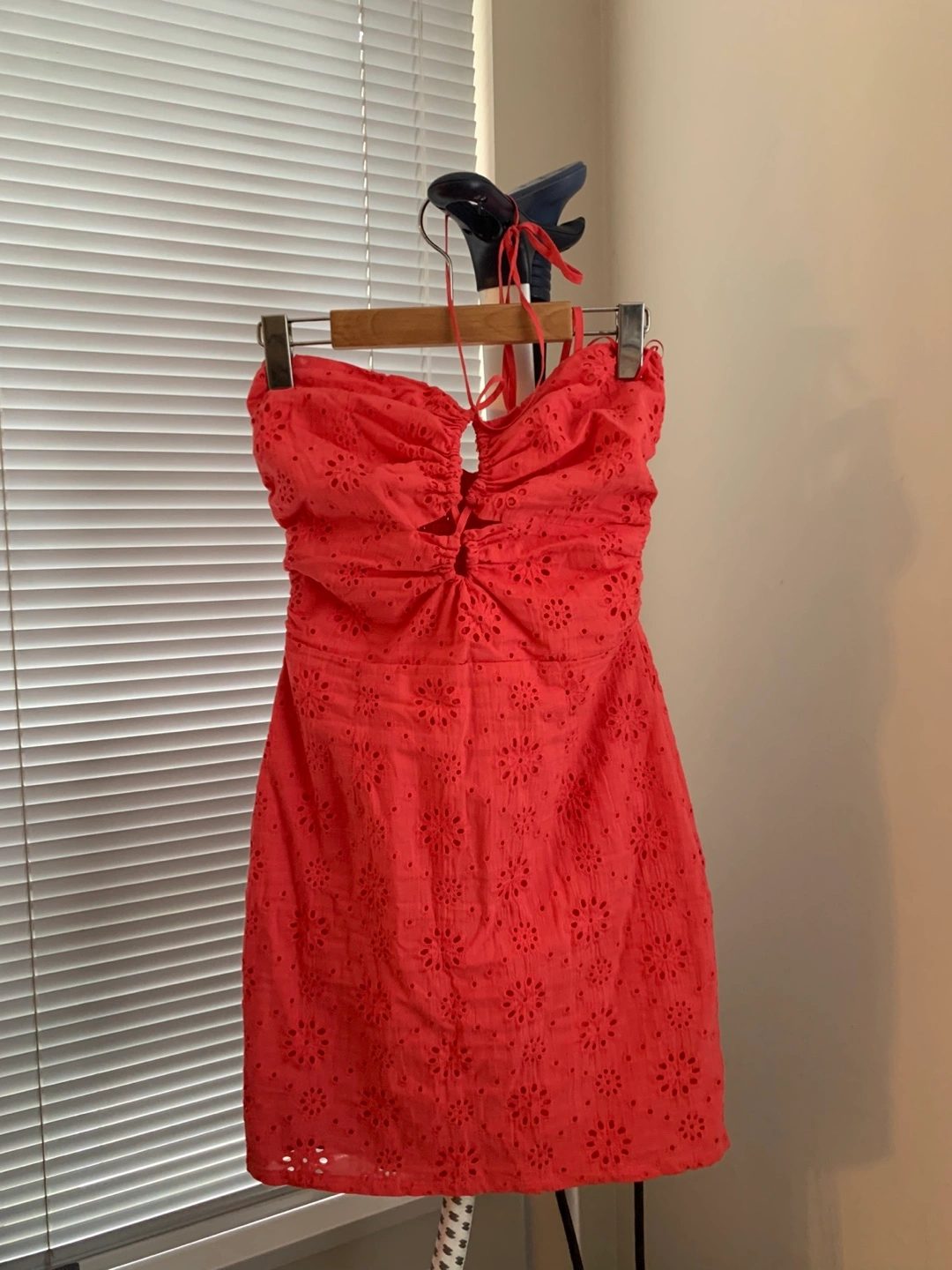 Selling a cute pink Guess dress in size 0. It's a stylish piece with a unique design. The dress is made of cotton and is in great condition. Perfect for a casual day out or a special occasion!
