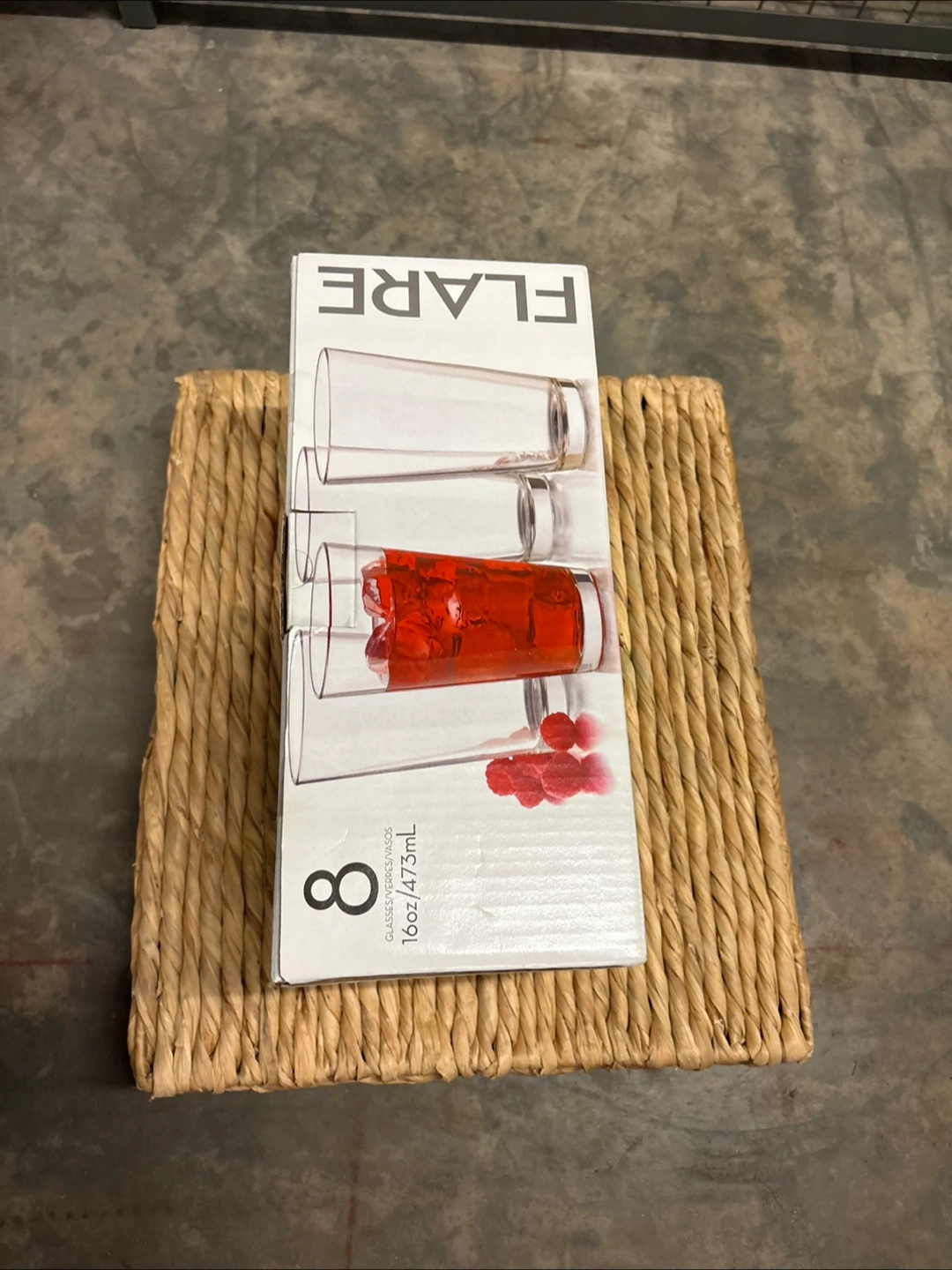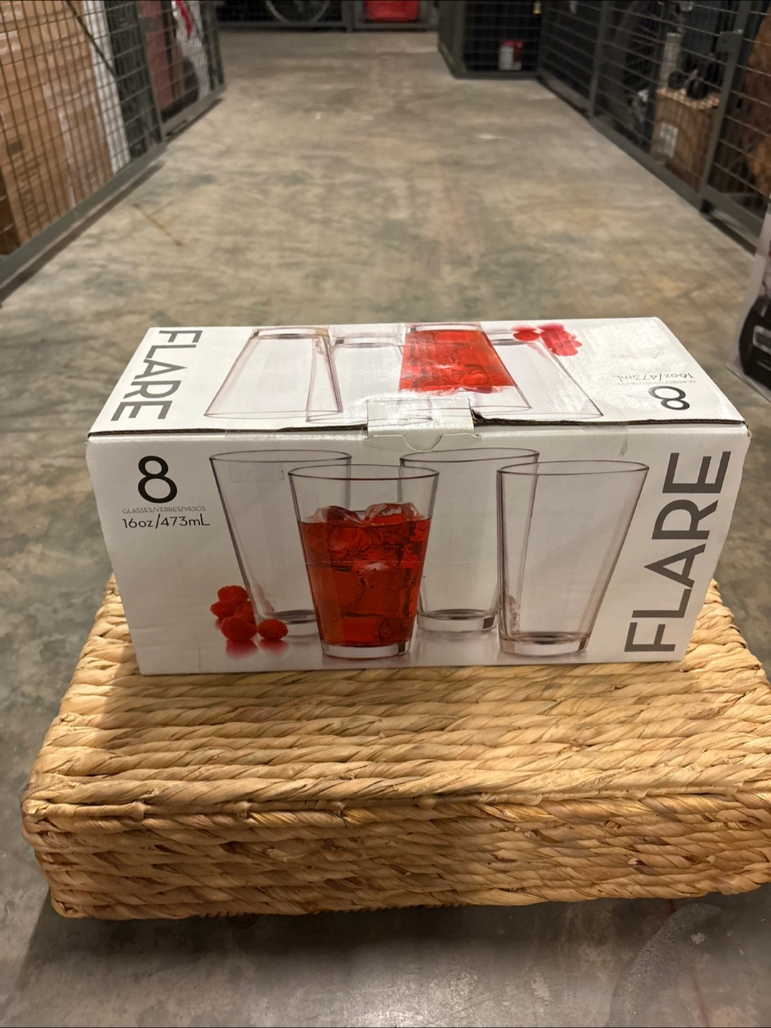 Selling a set of Flare glasses! This set includes 8 glasses, each holding 16oz/473mL. They are in great condition and come in their original box. Perfect for everyday use or entertaining