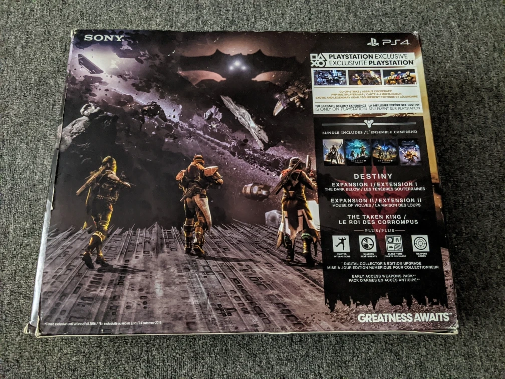 Destiny Taken King PS4 box only. Great condition, well preserved. Only light wear as expected and contains another empty PS4 Box inside as well. Asking only $5 Worth much more as shown! Text 647-783-8934