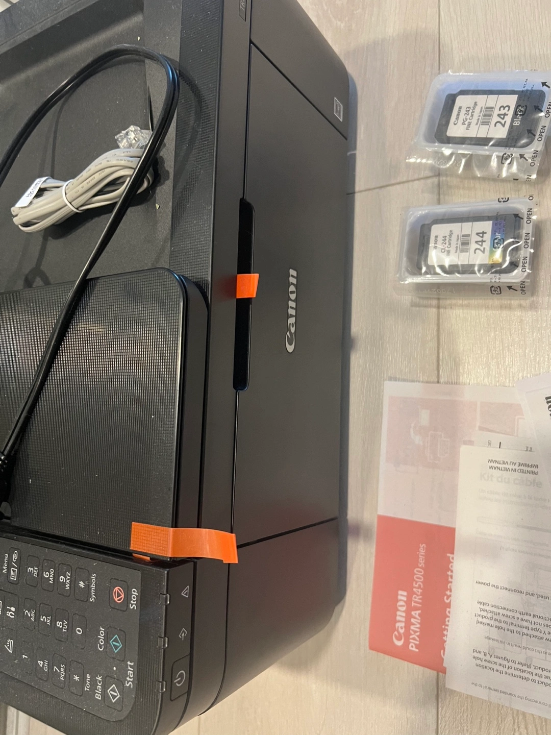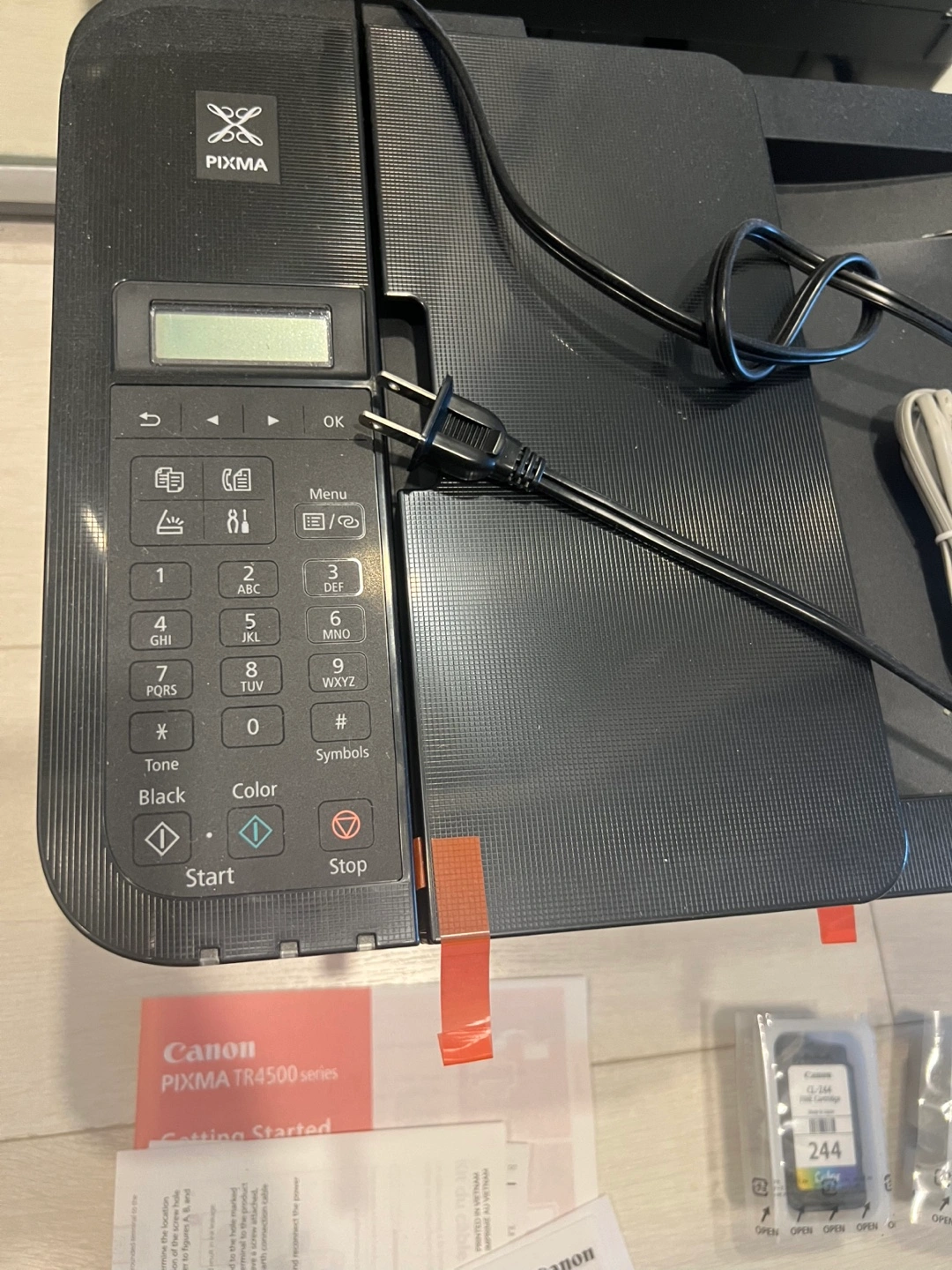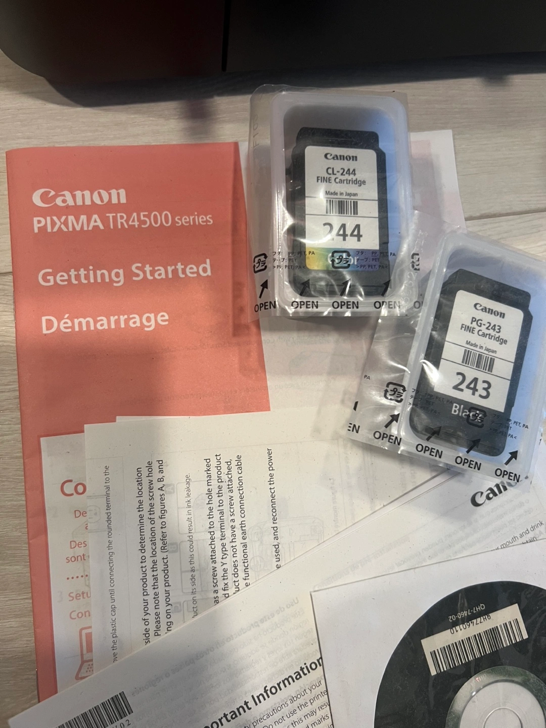 Never used!! Canon PIXMA TR4500 series printer. It comes with the Getting Started guide and two ink cartridges: CL-244 and PG-243. Also included is the setup CD. Pick up in regent park. Happy for someone to have it for free.