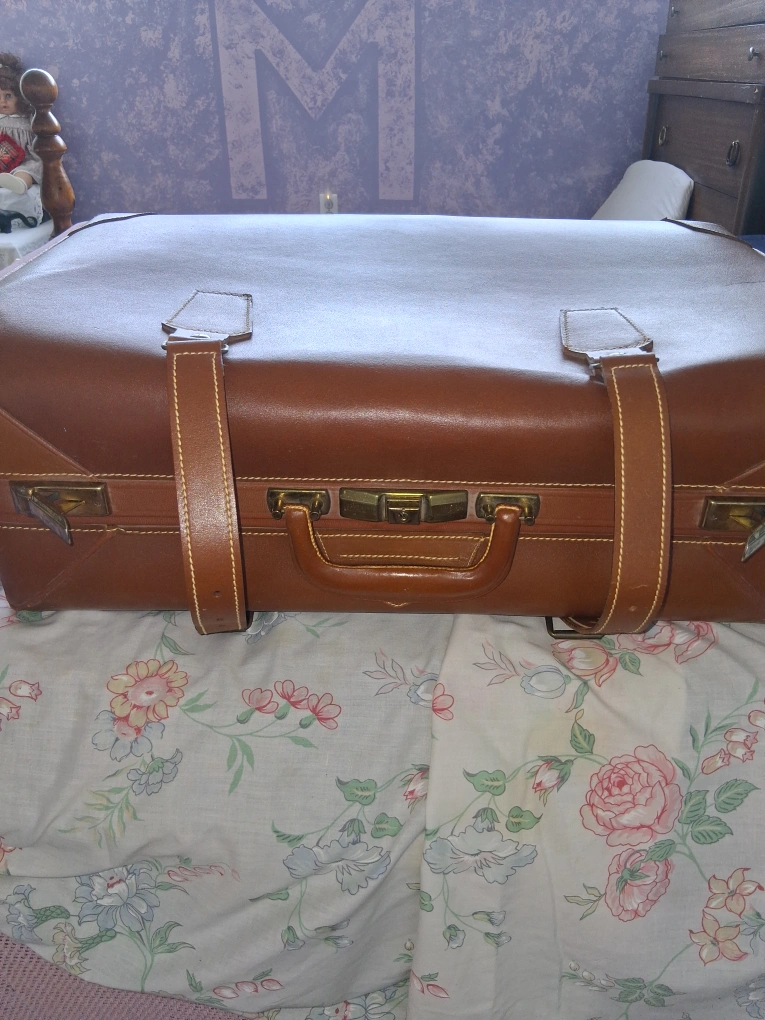 Selling a vintage leather suitcase in good condition. It's made of genuine cowhide with a sturdy construction. Perfect for adding a touch of classic style to your travels or as a unique decor piece!