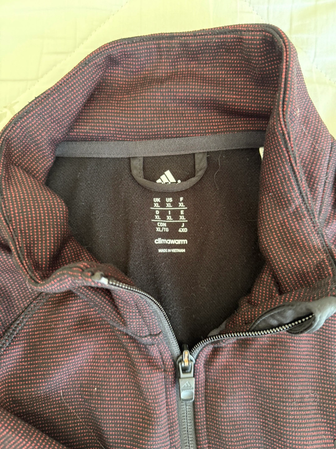 Selling an Adidas ClimaWarm jacket in size XL. It's in great condition and ready to keep you warm! Made in Vietnam.